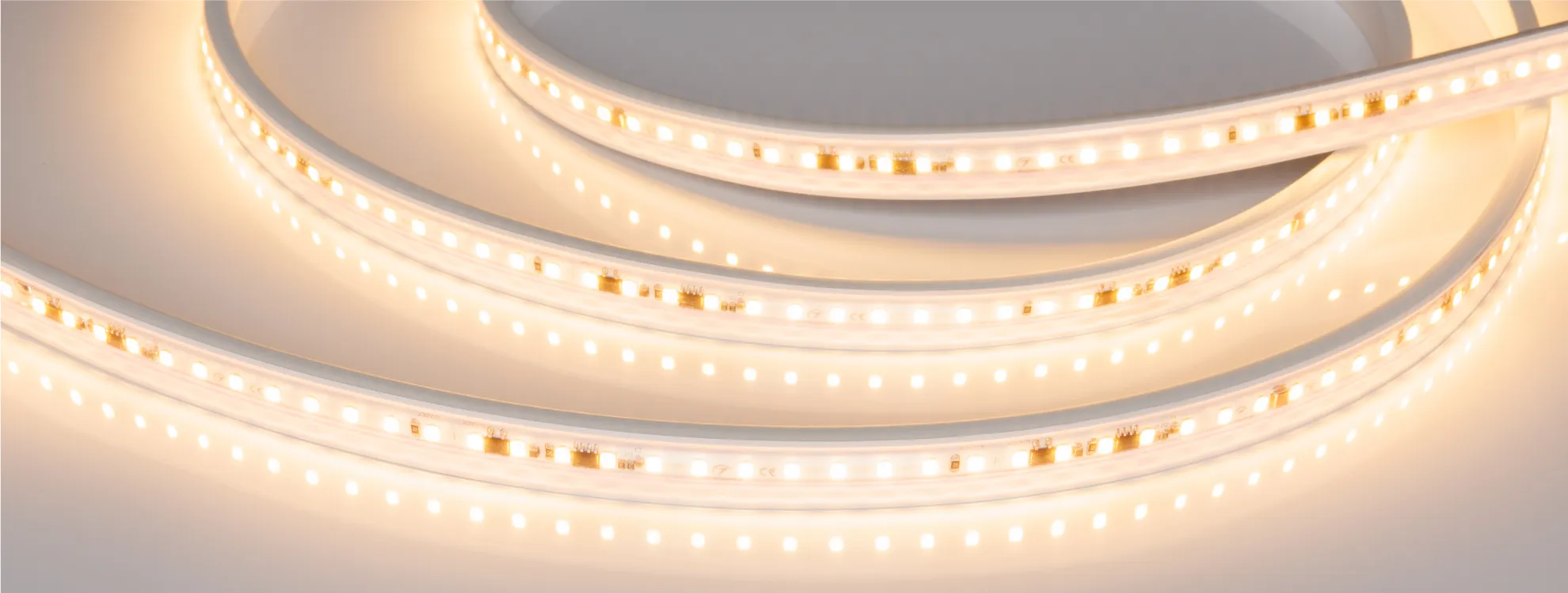 Защита от УФ-излучения Оболочка обеспечивает защиту от ультрафиолета, поэтому светодиодную ленту можно использовать в помещениях и на улице.