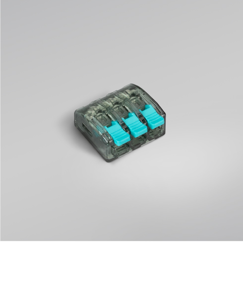 Фиксация Благодаря рычажковому механизму зачищенные провода легко вставляются и фиксируются в клемме.