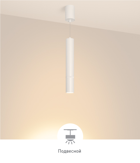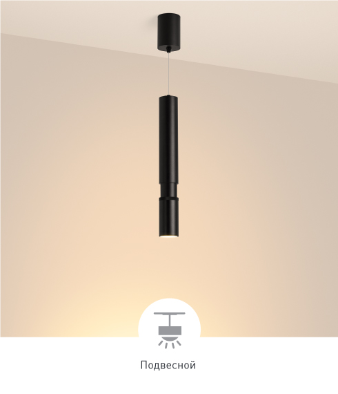 Регулировка подвеса Специальная система регулировки подвеса позволяет моментально установить необходимую высоту расположения светильника: для этого потяните корпус вниз на нужное расстояние и отпустите.