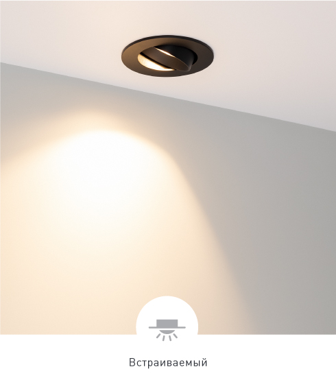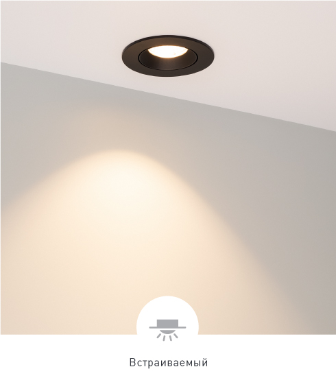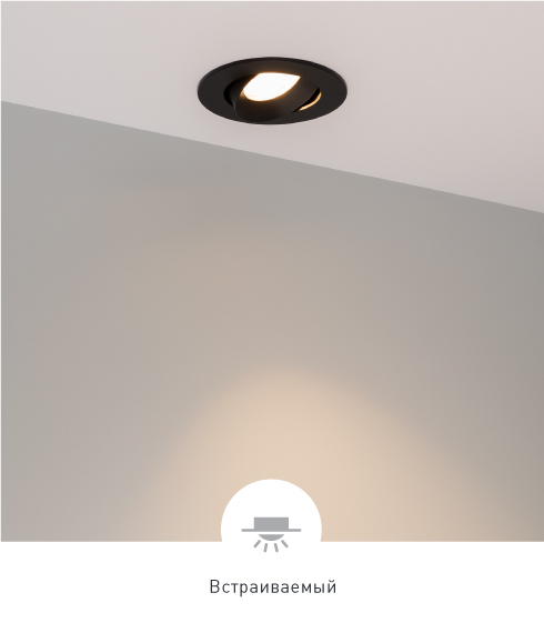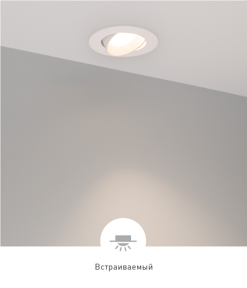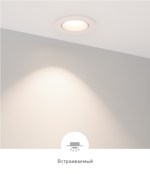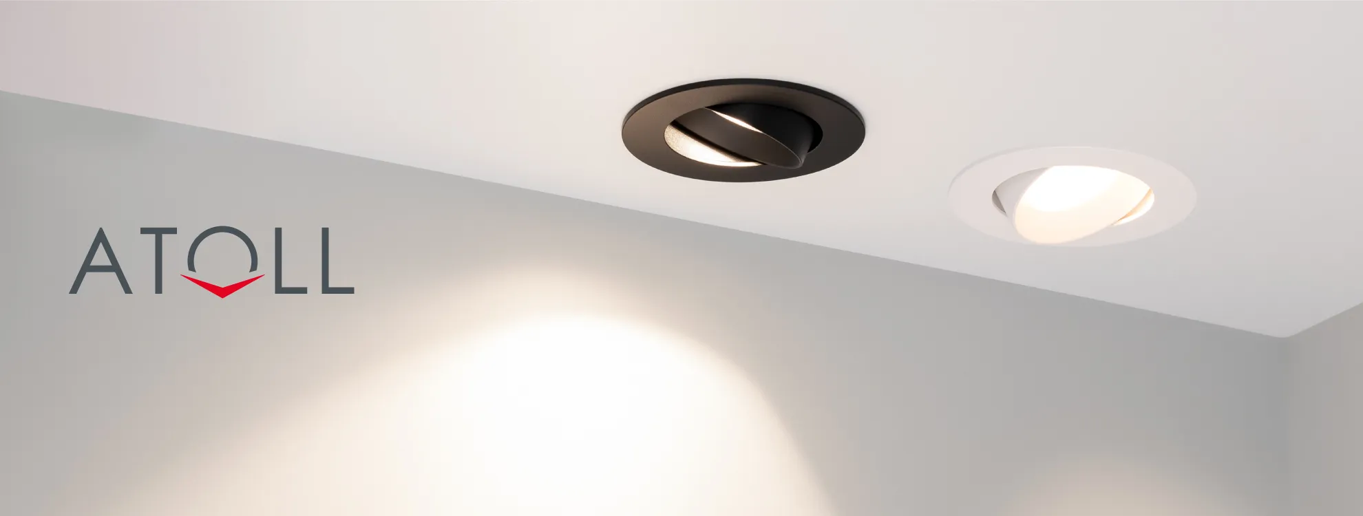 Вариативность угла излучения Среди даунлайтов ATOLL вы найдете модели с узким (36°) и средним углом излучения (60°), что позволяет создать в одном пространстве акцентное и основное освещение в едином стиле.