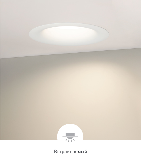 Качественный свет Высокий индекс цветопередачи (CRI>90) обеспечивает естественную цветовую гамму окружающих предметов. При этом рассеиватель углублен внутрь корпуса светильника, что исключает возникновение слепящего света.