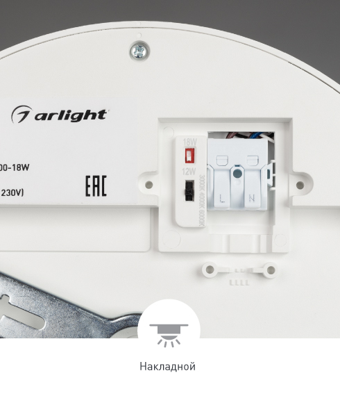 Особенности Изменяемые значения цветовой температуры (3000/4000/6000 К) и мощности (8/12/18 Вт). Значения переключаются на корпусе и устанавливаются по умолчанию при монтаже светильника.