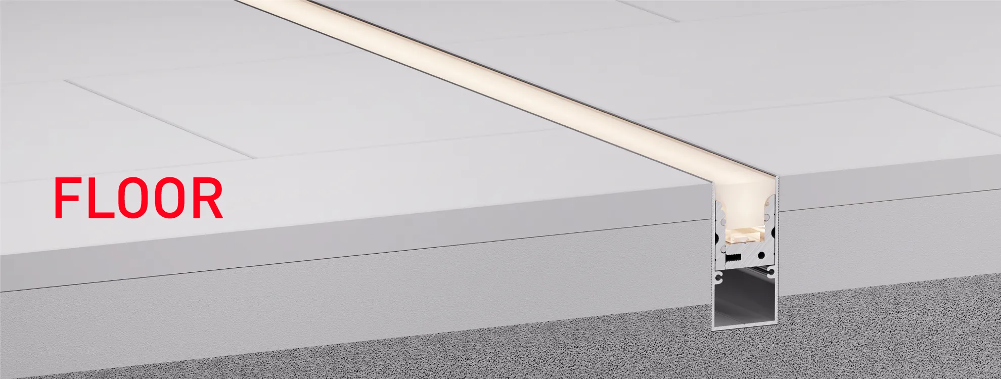 Профили серии "FLOOR" - это современное решение для создания стильных световых линий на полу и зонирования пространства.