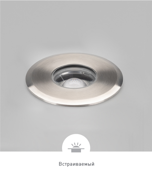 Встраиваемый светодиодный светильник для грунта и пола. Влагозащищенный корпус технологичного дизайна выполнен из нержавеющей стали и алюминиевого сплава, имеет стойкое к механическим воздействиям покрытие.