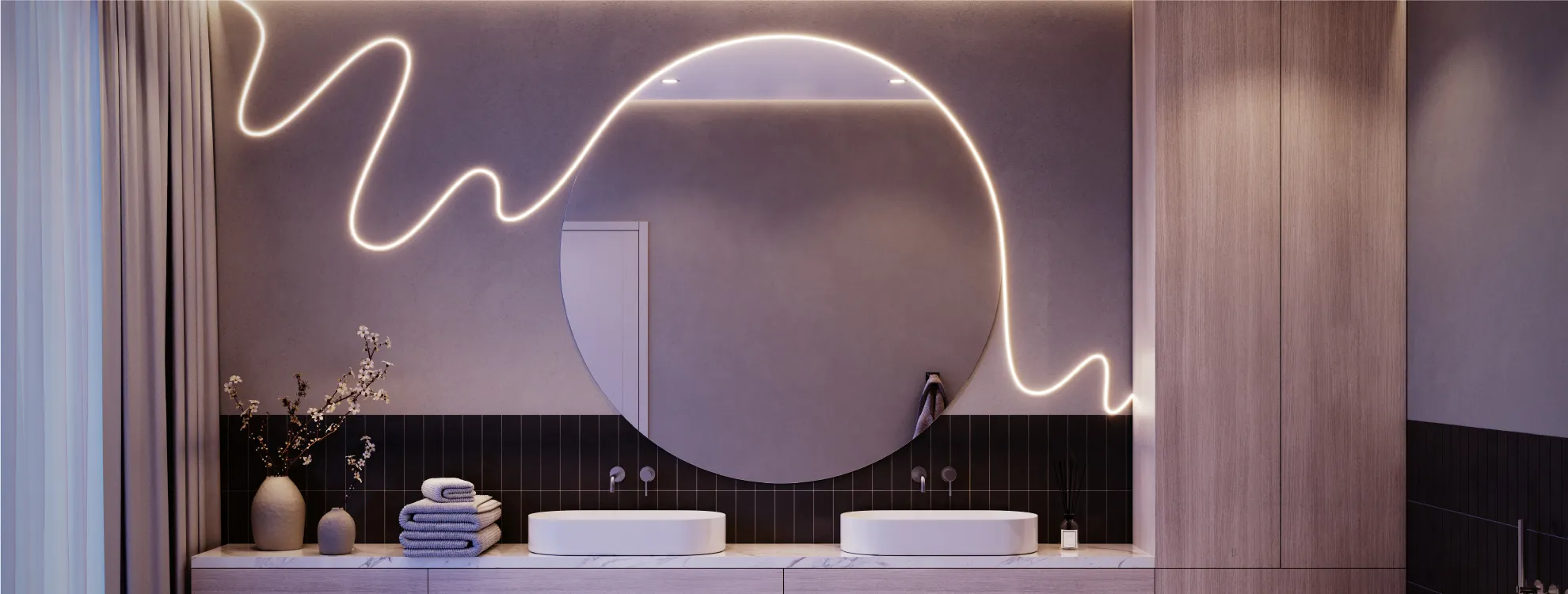 Гибкий неон HALO — элегантная декоративная подсветка современных интерьеров и мебели. Хорошо подходит для домов, ресторанов, офисов и спортзалов, создавая мягкое освещение с цветопередачей CRI>80. Миниатюрное сечение 6×13 мм органично вписывается в любой дизайн. Грибовидная форма обеспечивает равномерное свечение с плавной границей светового пучка. Благодаря защите IP67 неон безопасно использовать во влажных помещениях, например, в ванных комнатах или WC коммерческих помещений.