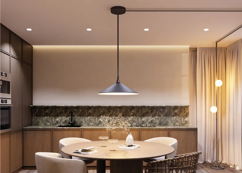 Широкий ассортимент светильников в единой черной гамме. Модели можно комбинировать между собой, создавая различные световые решения в рамках одной системы. В линейке представлены: споты INBELT CUP с поворотным корпусом (вращение на 350°), углами свечения 25 и 34° и тремя вариантами мощности для акцентного света; интерьерные светильники INBELT BOWL, INBELT SFERO, INBELT WOK для создания уютной атмосферы; линейные светильники INBELT DOTS, INBELT FLAT для равномерного и яркого освещения. Светильники с высоким индексом цветопередачи (CRI>92) подходят для освещения жилых помещений, шоурумов, торговых залов. Настройка разных сценариев, яркости и цветовой температуры от теплого до холодного оттенка возможна с помощью протокола управления DALI. Монтаж выполняется на гибкий текстильный ремень.