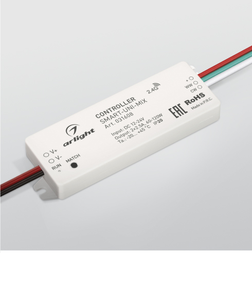 Поддерживают основные функции: включение и выключение, управление яркостью одноцветных лент, управление цветовой температурой мультибелых лент, управление цветом мультицветных RGB- и RGBW-лент.