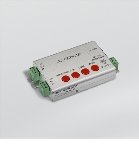 Контроллеры предназначены для управления светодиодными флеш-модулями и светодиодными лентами, поддерживающими управление по протоколу SPI или DMX512. Позволяют создавать и воспроизводить динамические эффекты, тексты, рисунки и видеоизображения на светодиодных экранах, медиафасадах, архитектурных инсталляциях, в интерьерных композициях и других светодинамических проектах.