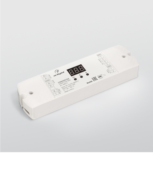 Удобство настройки Выбор типа выходного сигнала (0–10 В или 1–10 В), кривой диммирования (линейной или логарифмической), режима DMX-адресации (DIM, MIX или RGB/RGBW) производится с помощью кнопок прямо на корпусе.