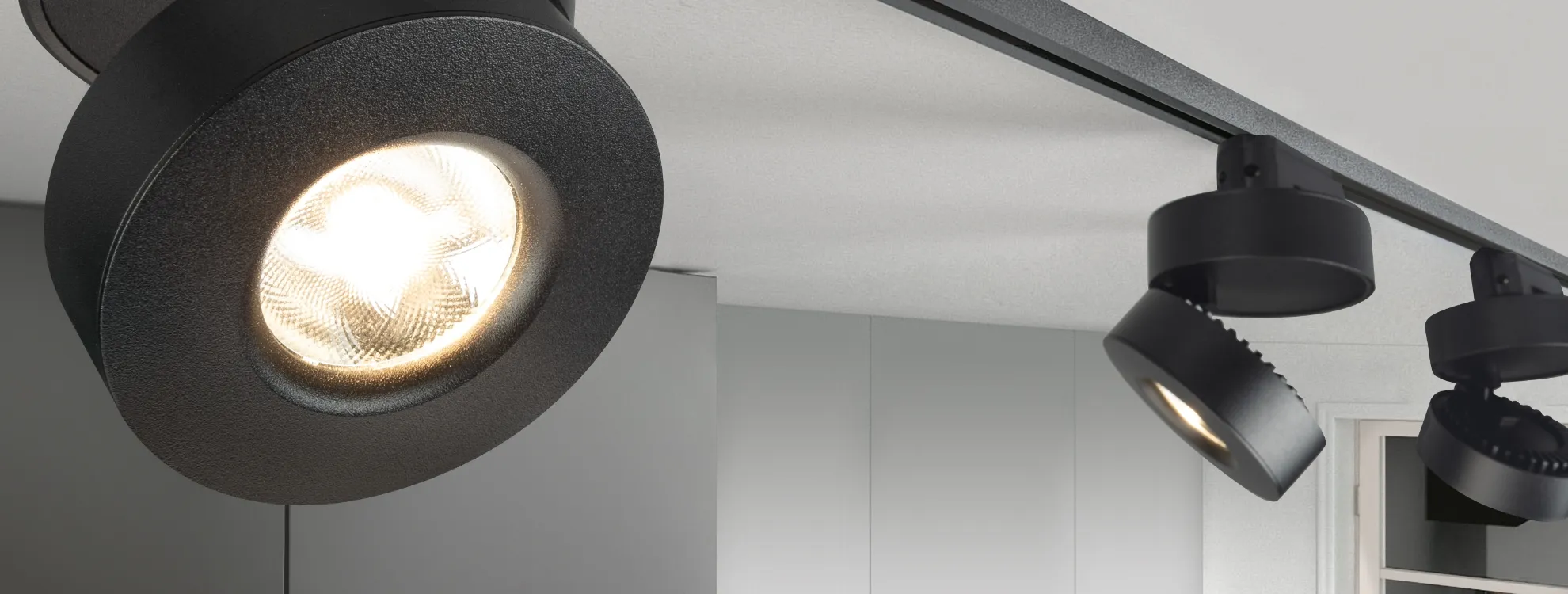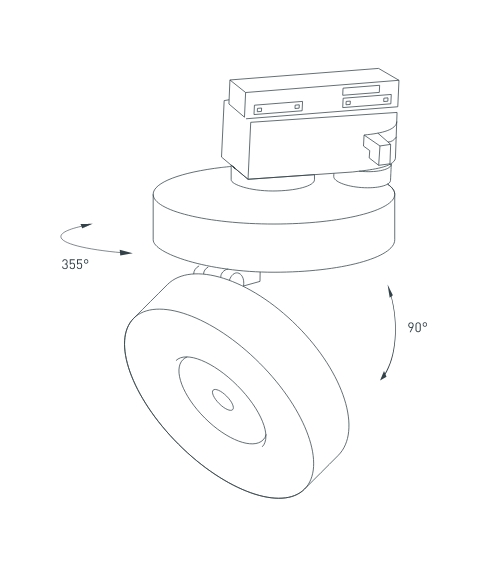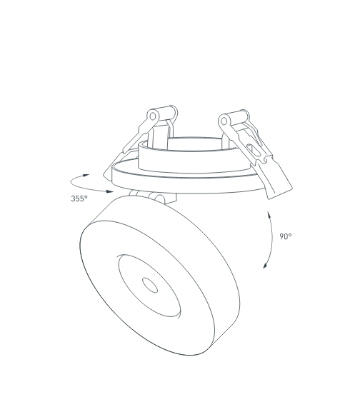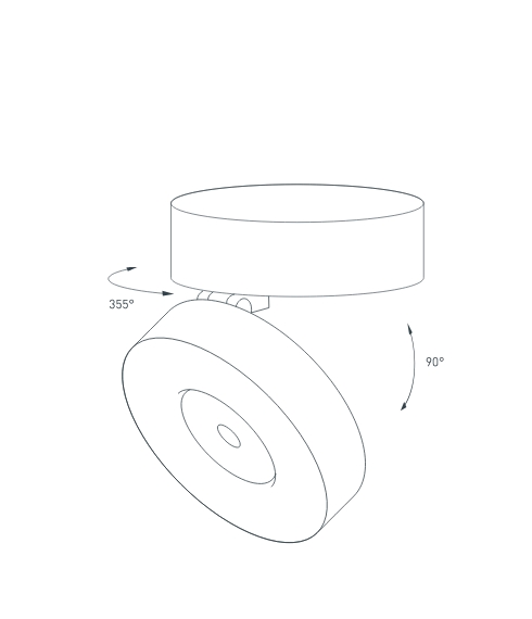 Белые и черные корпуса с откидным механизмом, который позволяет вращать корпус светильника на 355° и задавать угол наклона до 90°, что позволяет точно расставить световые акценты при освещении.