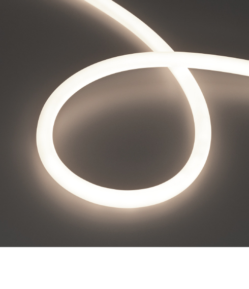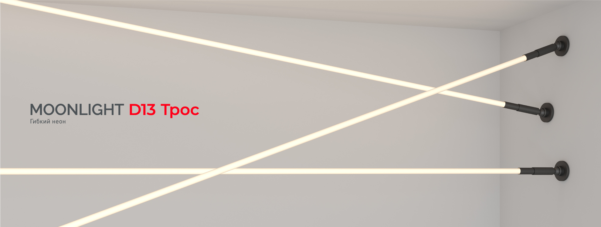 Гибкий неон MOONLIGHT D13 со специальным регулирующим тросом внутри предназначен для создания декоративной подсветки и световых 3D-инсталляций. Благодаря небольшому диаметру (всего 13 мм) он отлично подходит для оформления ниш и элементов мебели.