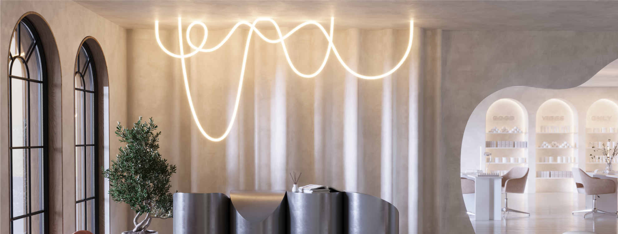 Широкий выбор аксессуаров За счет большого выбора подвесов, креплений и держателей возможно создавать различные фигуры на основе гибкого неона (аксессуары приобретаются отдельно).