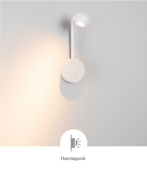 Поворотный, позволяет легко менять направление света. Два цвета: черный и белый.