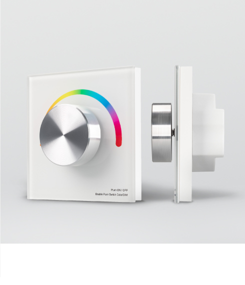 Накладные роторные панели предназначены для управления по ШИМ одноцветными, мультибелыми и мультицветными светодиодными лентами или другими источниками света с помощью стильного вращающегося регулятора.
