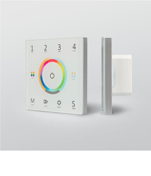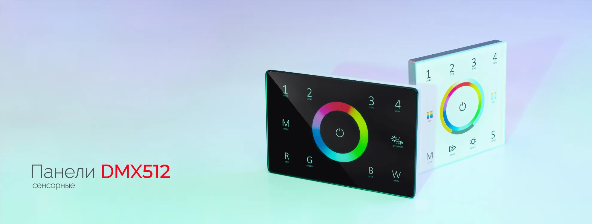 Сенсорные панели со встроенным контроллером предназначены для включения, выключения и регулировки яркости или цвета свечения (в зависимости от модели) источников света, управляемых по протоколу DMX512. Отдельные панели серии совместимы с контроллерами серии SMART, поддерживающими управление по радиоканалу (RF).