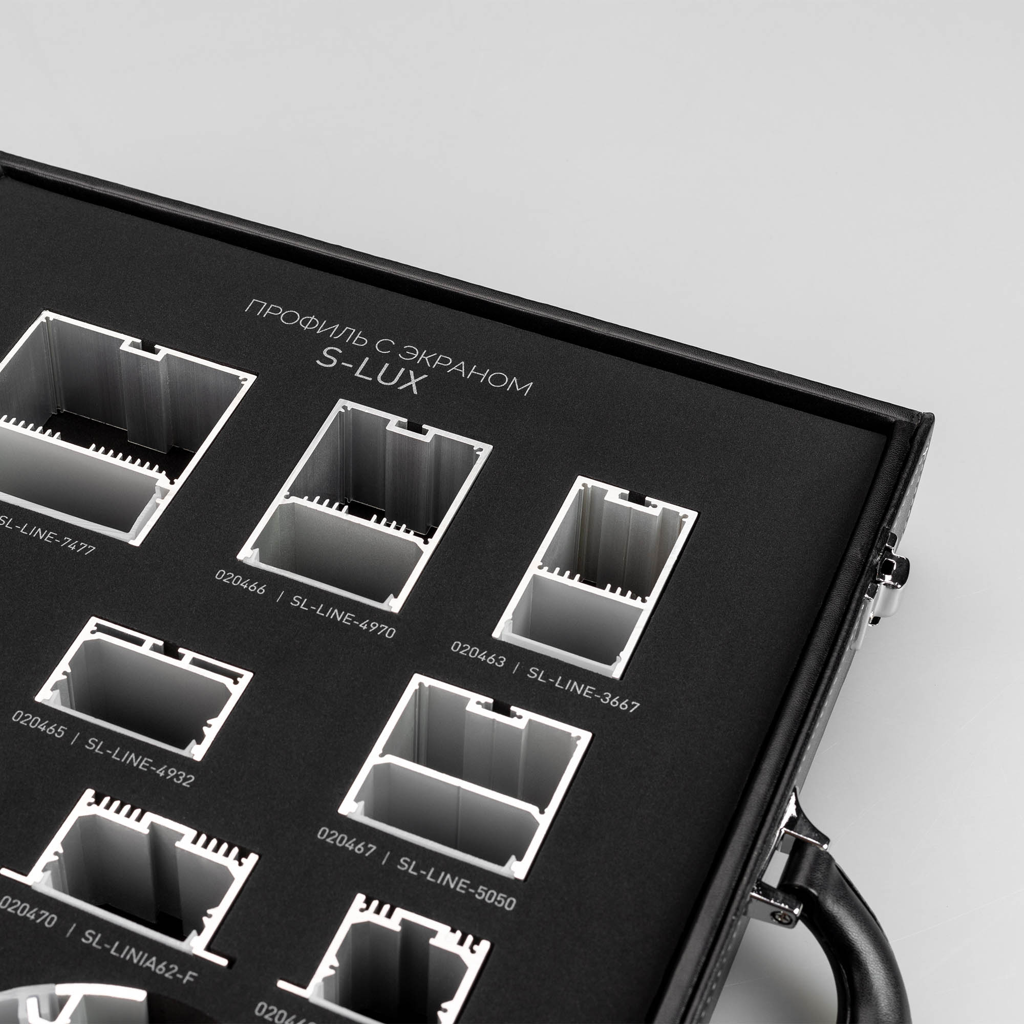 Демонстрационный набор образцов профиля S2-LINE, S2-LINIA, S2-WALL, SL-LINE, SL-LINIA, SL-ROUND в комплекте с экранами.
