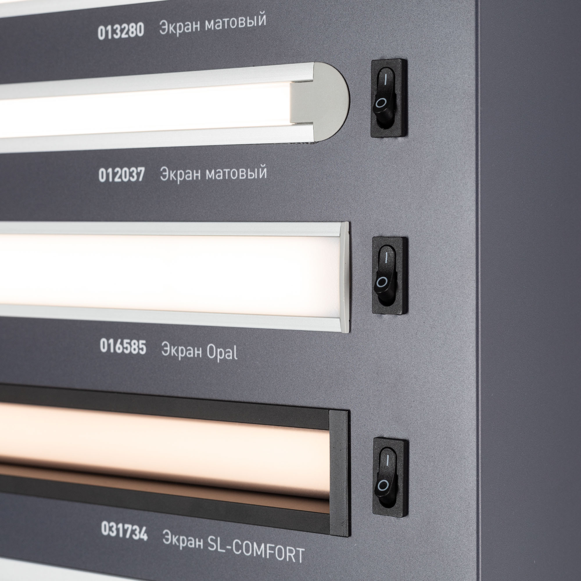 На стенде представлен ассортимент алюминиевых встраиваемых профилей для светодиодных лент для основного и декоративного освещения.