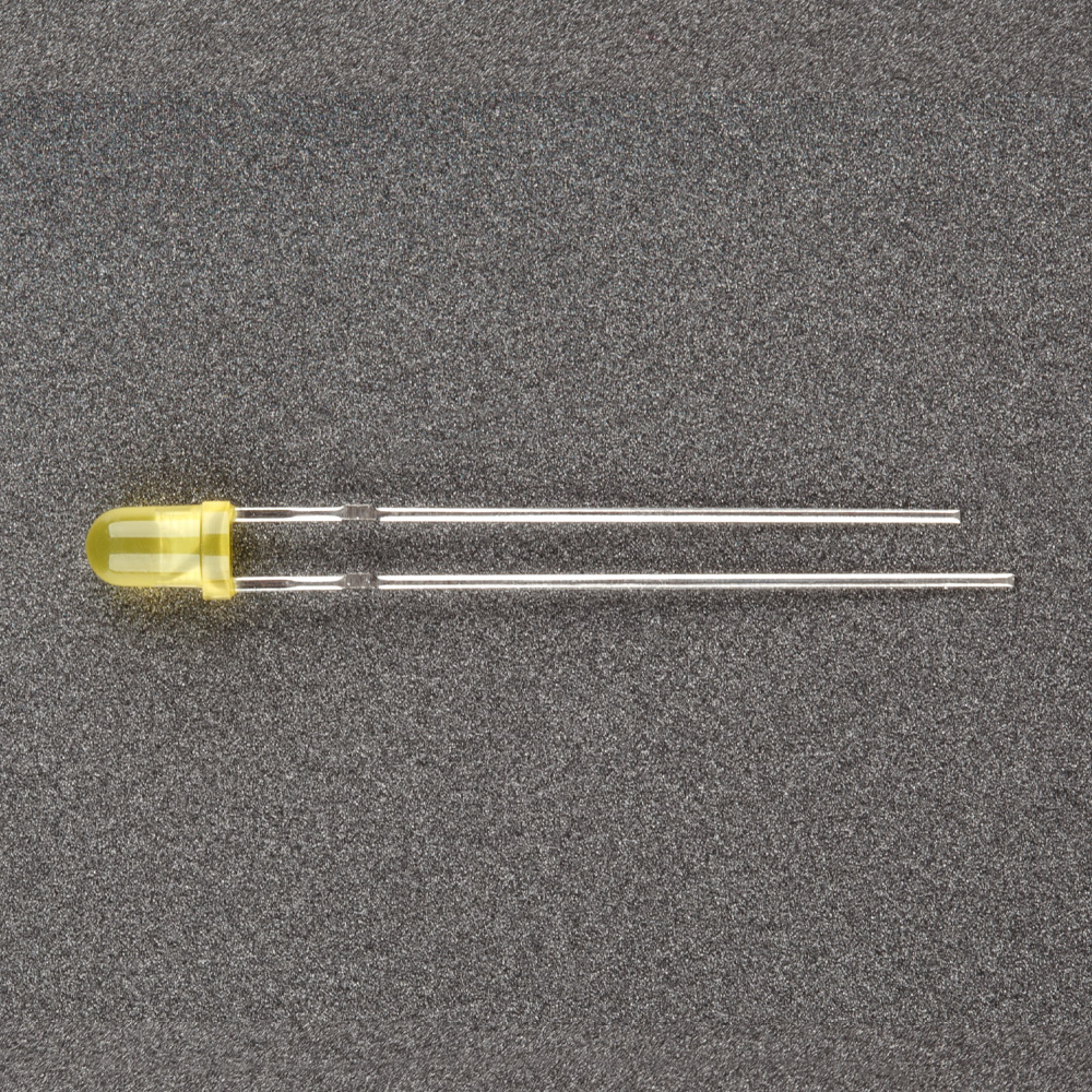 Поставка под заказ от 5000 шт. Выводной круглый светодиод, d=3 мм, диффузная желтая линза. Цвет свечения желтый (580-595 нм). Угол излучения 60°. Сила света Iv=100-150 мкд при If=20 мА. VF=1.9-2.3 В.
