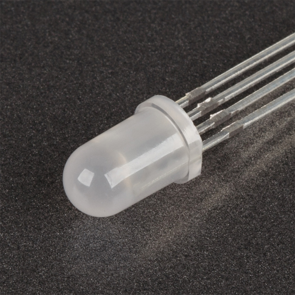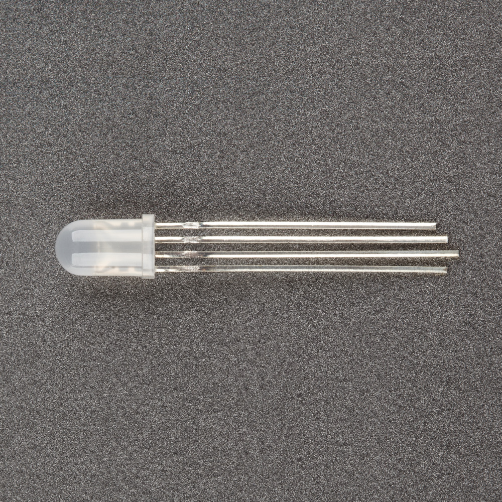 Поставка под заказ от 5000 шт. Выводной круглый светодиод, d=5 мм, белая матовая линза. Цвет свечения RGB: красный (640 нм), зеленый (525 нм), синий (465 нм). Угол излучения 60°. Сила света Iv=300-1200 при If=20 мА. VF=1.9-2.5 В (красный). VF=2.9-3.5 В (зеленый/синий). Четыре вывода, общий анод.