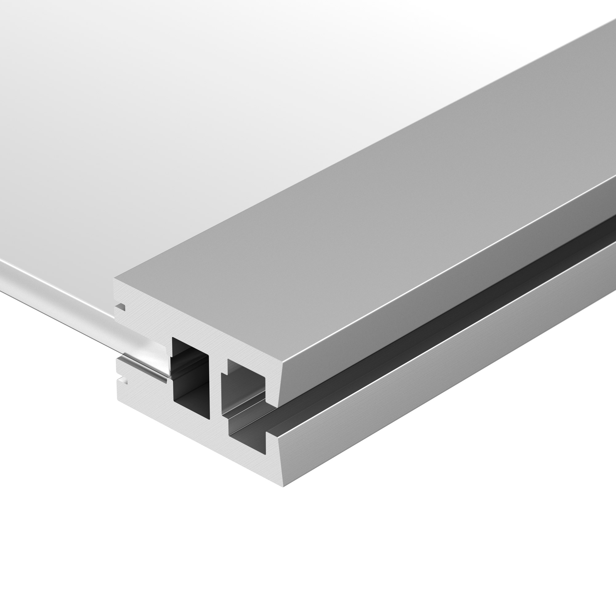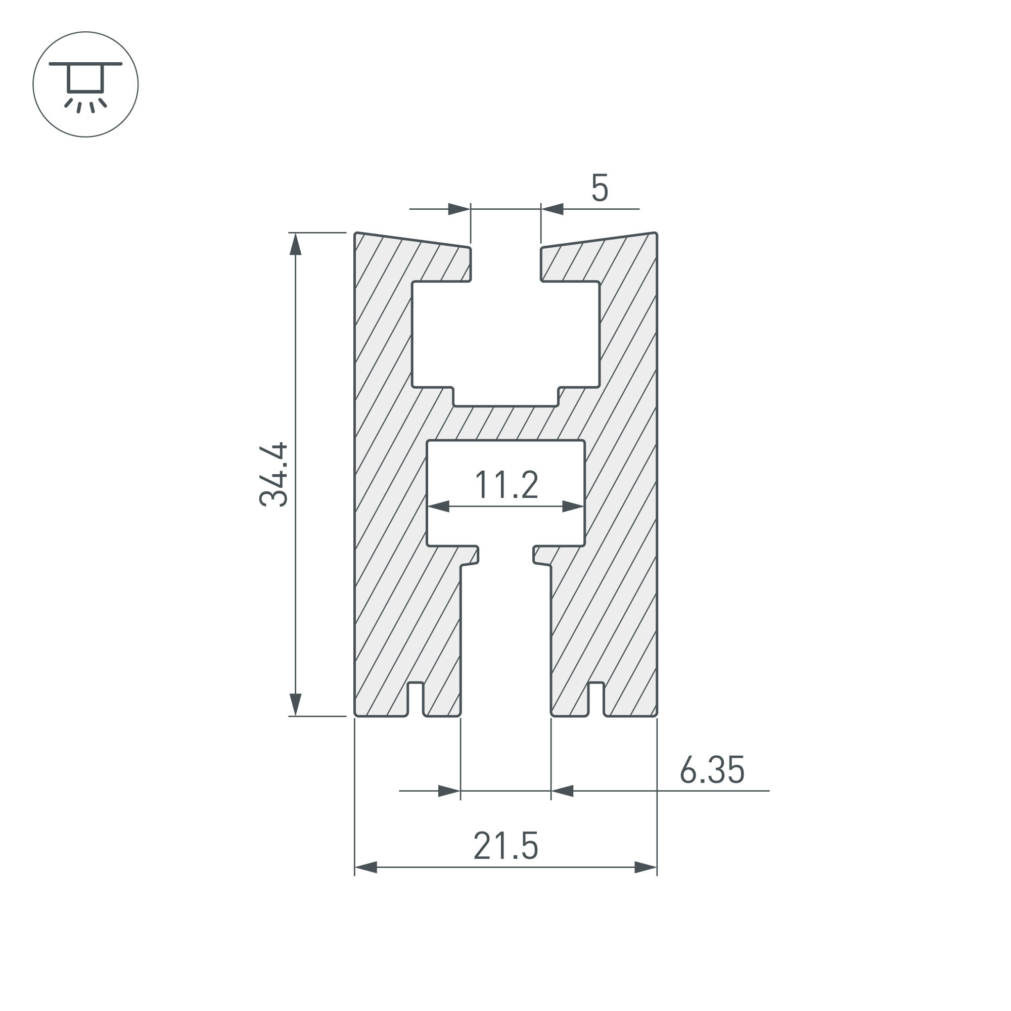 Накладной профиль из анодированного алюминия для монтажа и подсветки стекла (засветка до 15 см) или поликарбоната (засветка до 60 см) толщиной 6 мм. Габаритные размеры профиля составляют 2000 мм в длину, 21,5 мм в ширину и 34,4 мм в высоту. Площадка для установки светодиодных лент позволяют использовать ленту шириной до 11 мм и мощностью до 30,7 Вт/м. Это обеспечивает гибкость в выборе светодиодных лент и создает потрясающие световые решения.
