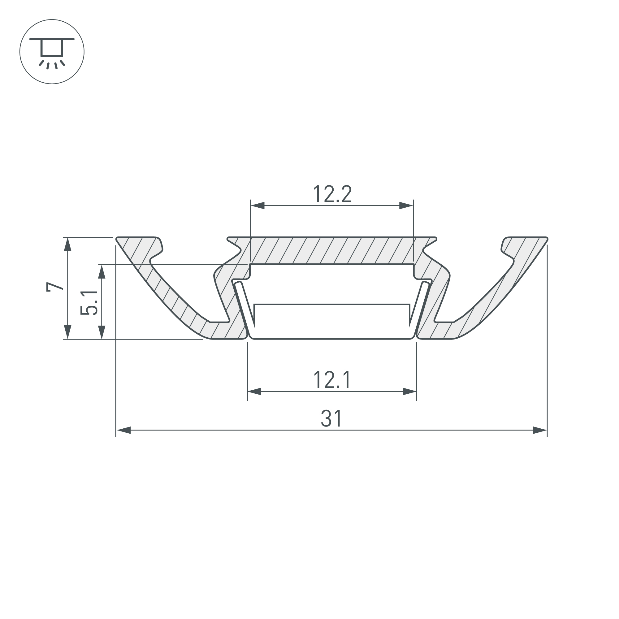 Алюминиевый анодированный профиль для светодиодных лент и линеек. Габаритные размеры (L×W×H): 2000x31x7 мм. Ширина площадки для ленты 12,2 мм. Экраны, заглушки и другие аксессуары приобретаются отдельно. Цена за 1 метр.