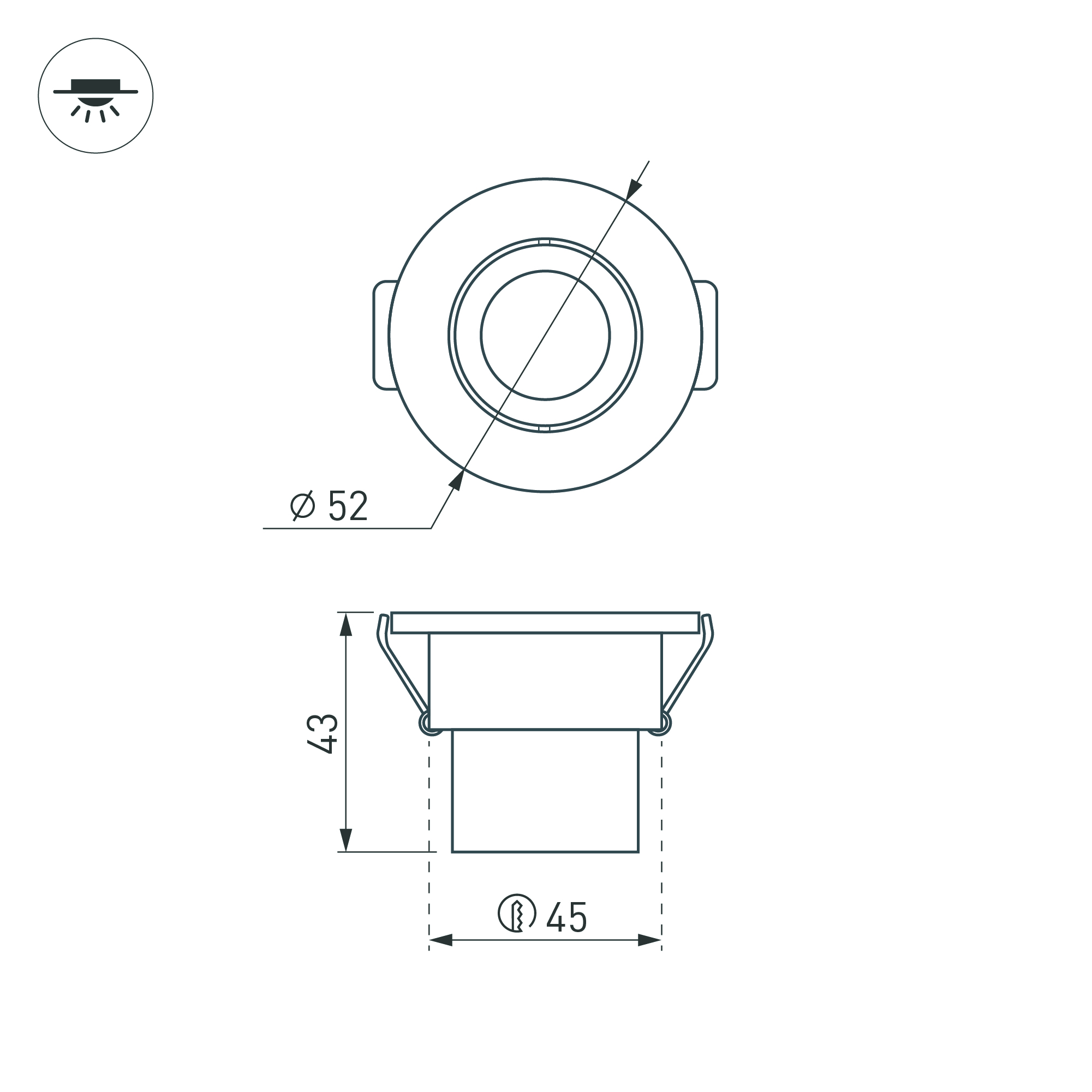 Компактный врезной мебельный светильник LTM-R52WH 3W Warm White 30deg мощностью 3 Вт с теплым белым цветом свечения (2700–3000 К) для встраивания в мебель, гипсокартонные конструкции и другие поверхности в жилых и общественных помещениях. Светильник с узким углом излучения 30°, световым потоком 140–160 лм и индексом цветопередачи CRI>80. Легко монтируется в установочное отверстие диаметром 45 мм с помощью пружин. Драйвер для подключения поставляется в комплекте. Возможна регулировка яркости после замены штатного драйвера на диммируемый.
