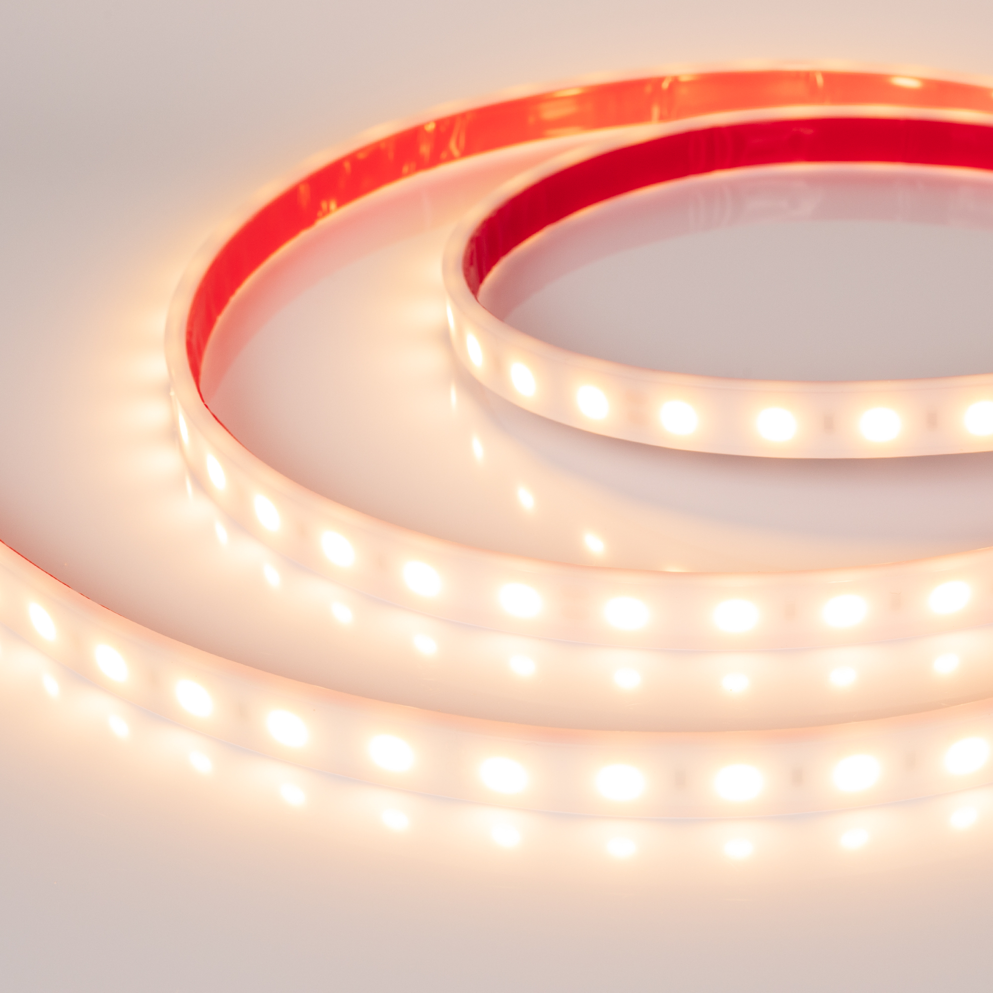 Герметичная светодиодная лента LUX шириной 13 мм в белой матовой силиконовой трубке с высокой степенью пылевлагозащиты IP66. Светодиоды SMD 5060 (60 шт/м) с теплым белым цветом свечения (2700 К), индекс цветопередачи CRI>85. Мощность 14.4 Вт/м, напряжение питания 24 В. Минимальный отрезок 100 мм (6 светодиодов). Освещение интерьеров и создание декоративной подсветки, оформление наружной рекламы и витрин. Возможно использование во влажных помещениях и на улице.