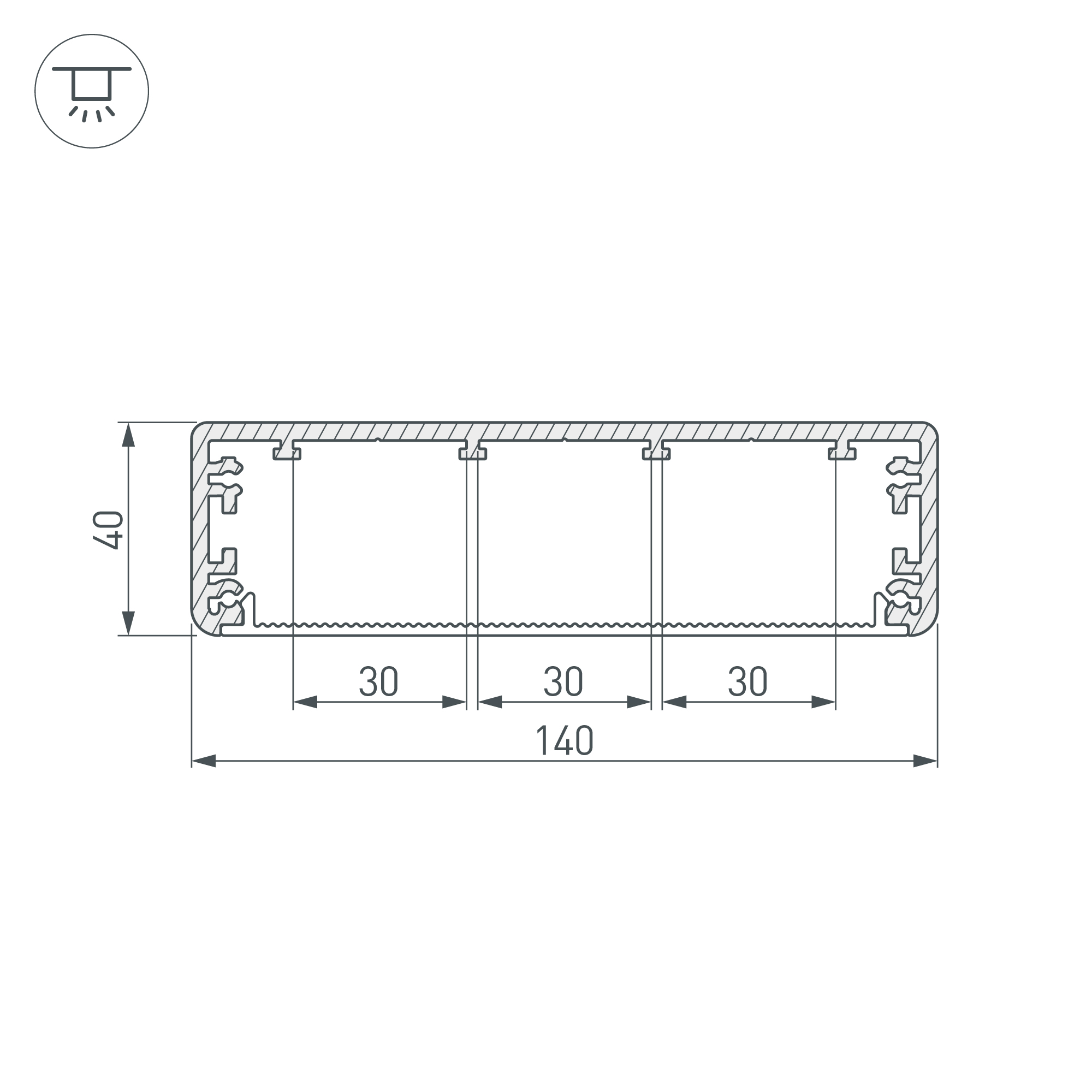 Накладной профиль из анодированного алюминия для основного освещения и контурной подсветки. Габаритные размеры профиля составляют 2000 мм в длину, 140 мм в ширину и 40 мм в высоту. Площадка для установки светодиодных лент позволяет использовать ленту шириной до 30 мм и мощностью до 94,5 Вт/м. Это обеспечивает гибкость в выборе светодиодных лент и создает потрясающие световые решения. Экраны, заглушки и другие аксессуары не включены в комплект и приобретаются отдельно. Цена указана за 1 метр профиля. Отличное решение для создания современных световых проектов.