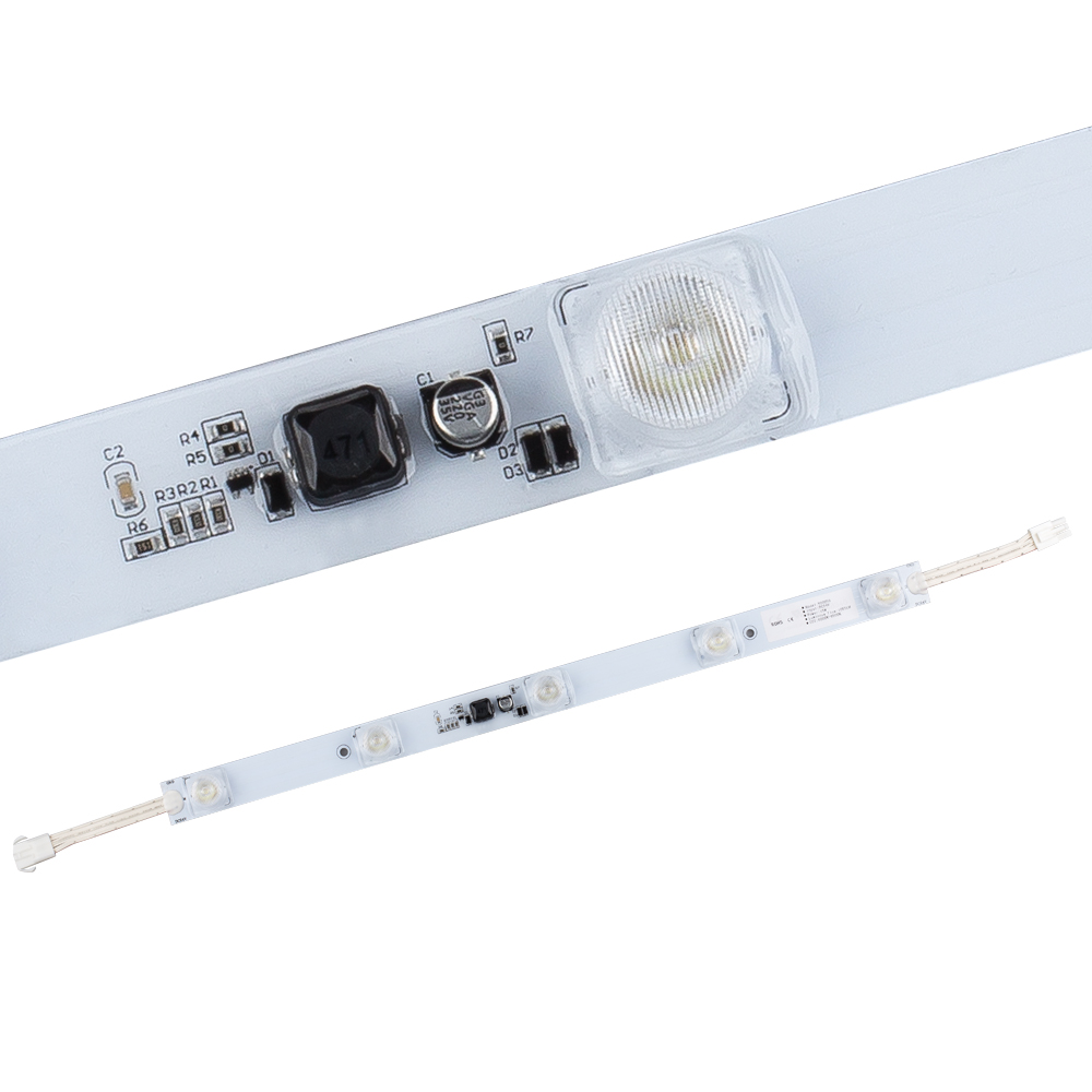 Герметичный светодиодный модуль-линейка ZM-5G-OS-24V White мощностью 15 Вт с белым цветом свечения 6000-7000К, световым потоком 1050 лм для создания качественной подсветки в наружной рекламе. Модуль-линейка состоит из 5 ярких светодиодов OSRAM. Напряжение питания 24 В безопасно и удобно в использовании, с помощью источника питания (поставляется отдельно) модули подключаются к сети 230В. Возможно использовать с диммерами для регулировки яркости. Линзы модулей с ассиметричной оптикой 15°/45° позволяют равномерно засветить конкретную область. Корпус выполнен с высокой защитой от пыли и влаги IP63, что позволяет использовать модули в уличных условиях при различной погоде. Длительная 5-летняя гарантия указывает на надежность и отличную работоспособность. Идеальное решение для двусторонней подсветки лайтбоксов глубиной 160-300 мм, вывесок-логотипов, стендов, экранов, декоративного оформления витрин.
