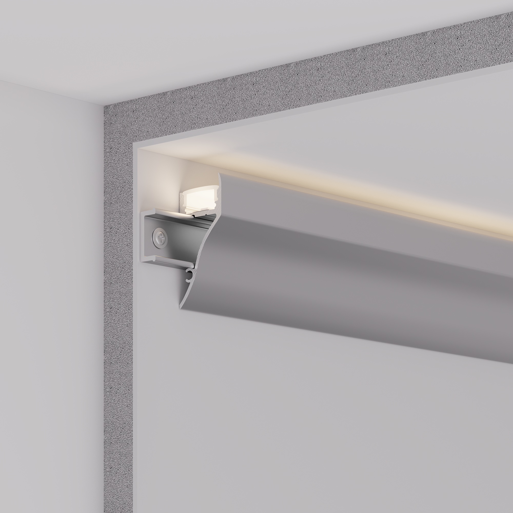 Накладной настенный профиль из анодированного алюминия для закарнизной подсветки или отраженного освещения стен.