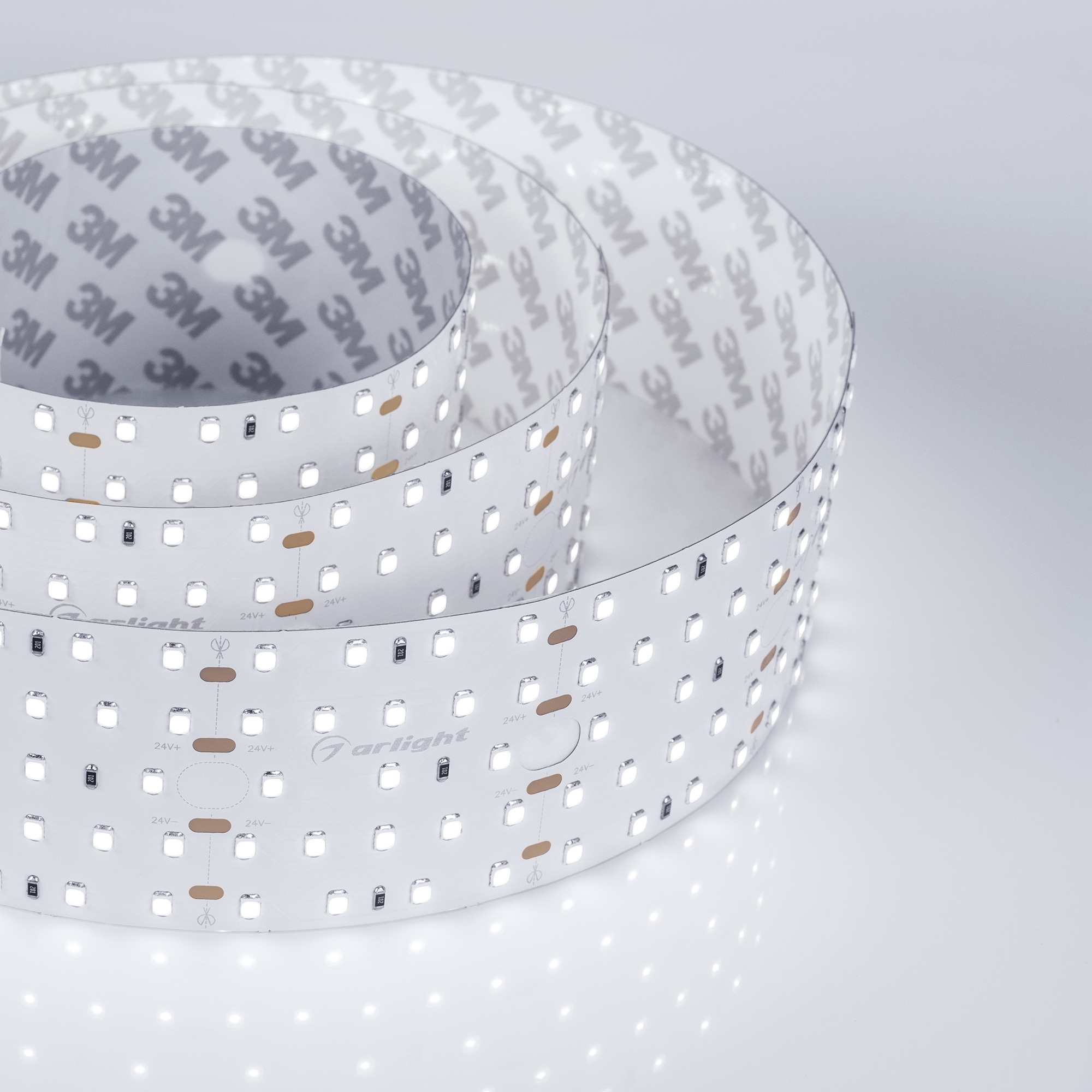 Минимальный отрезок 50 мм (21 светодиод). Высокая световая эффективность. Равномерное свечение по всей ширине профиля. Встроенные линии света для основного освещения. Создание накладных и подвесных светильников из алюминиевого профиля.