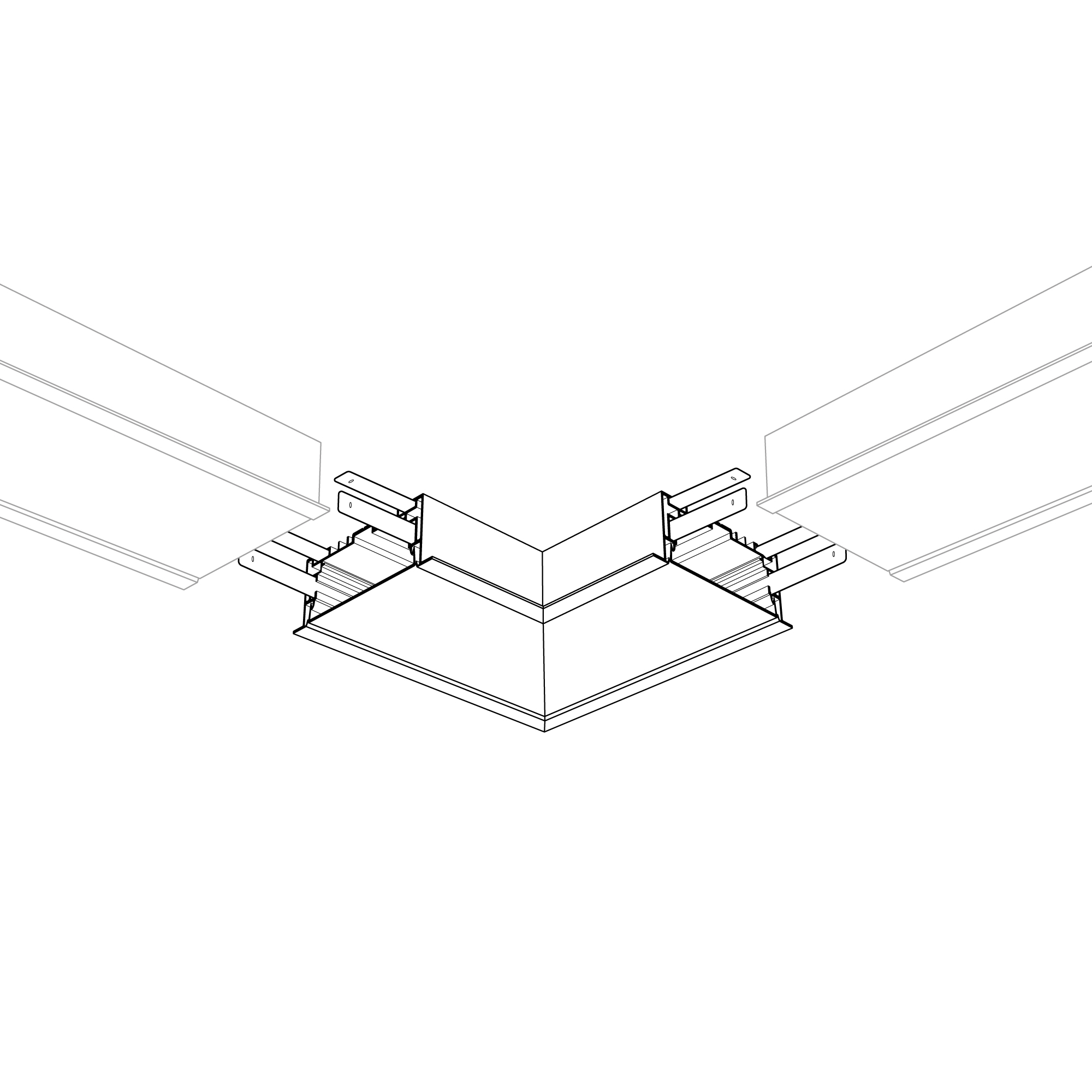 Прямой угол в сборе для соединения двух профилей S2-LINIA94-F под прямым углом 90° в одной плоскости в комплекте с матовым экраном и соединителями. Экран образует линию на плоскости. Применятся при изготовлении светильников сложной геометрии.