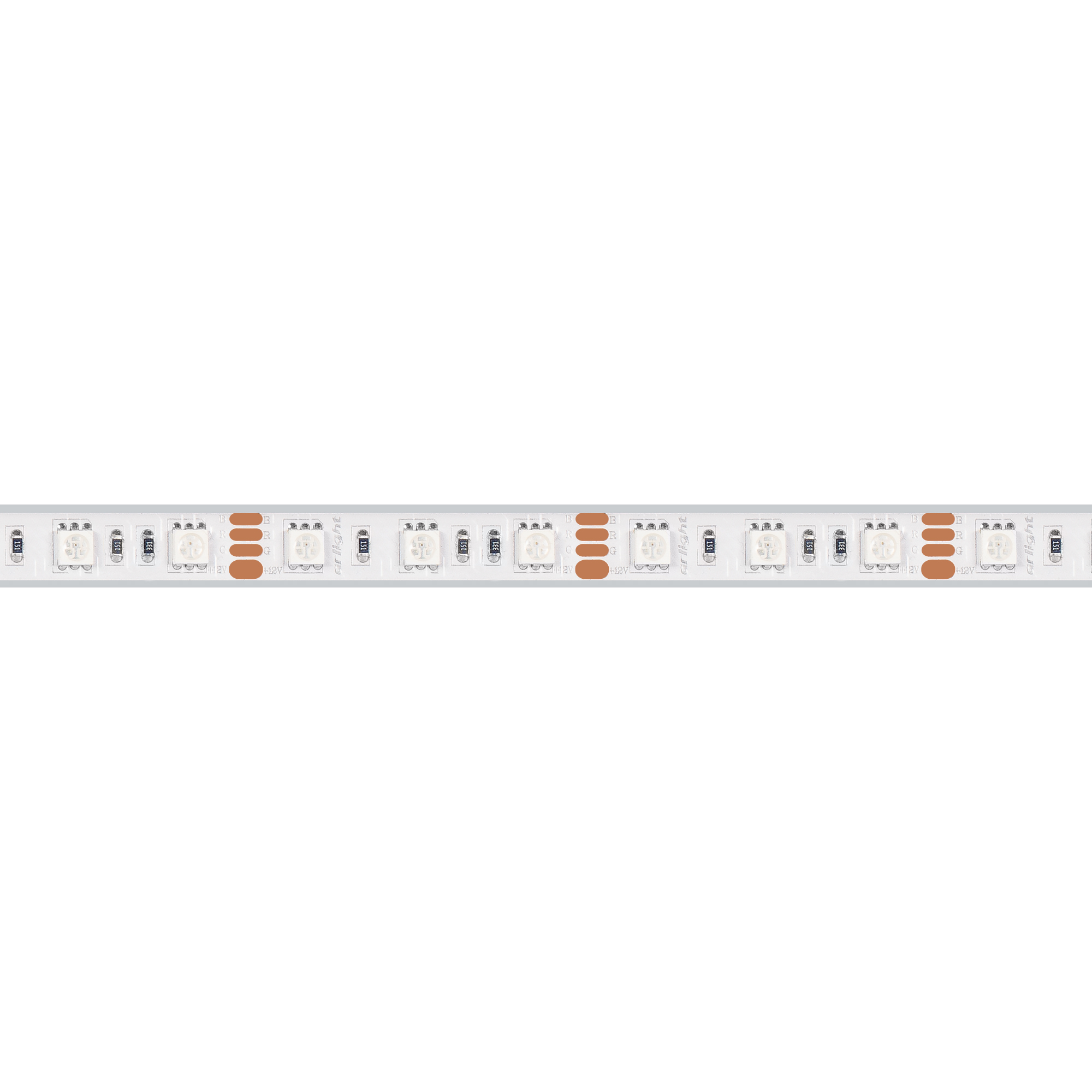 Герметичная мультицветная лента LUX шириной 12 мм с высокой степенью пылевлагозащиты IP67 (в силиконовой трубке) и RGB-светодиодами SMD 5060 (60 шт/м). Мощность 14.4 Вт/м, напряжение питания 12 В. Широкий шаг между светодиодами создает эффект видимых точек светодиодов. Освещение интерьеров и создание декоративной подсветки. Использование во влажных помещениях. Оформление наружной рекламы и витрин. Управляется RGB-контроллером. Минимальный отрезок 50 мм (3 светодиода).