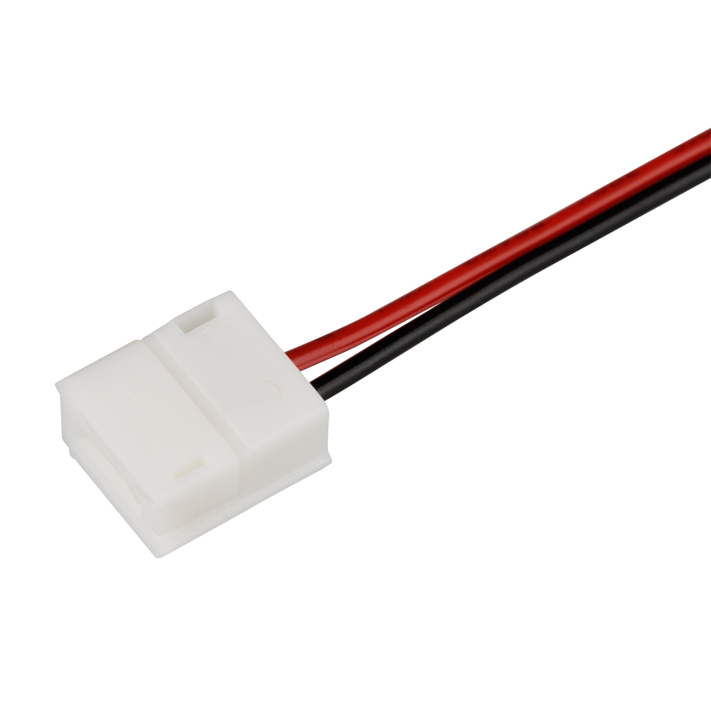 Одиночный коннектор с проводом 15см для подключения питания к ГЕРМЕТИЧНЫМ светодиодным одноцветным лентам шириной 8мм. Максимальный допустимый ток 3А, напряжение до 50 В. Цена за 1шт.
