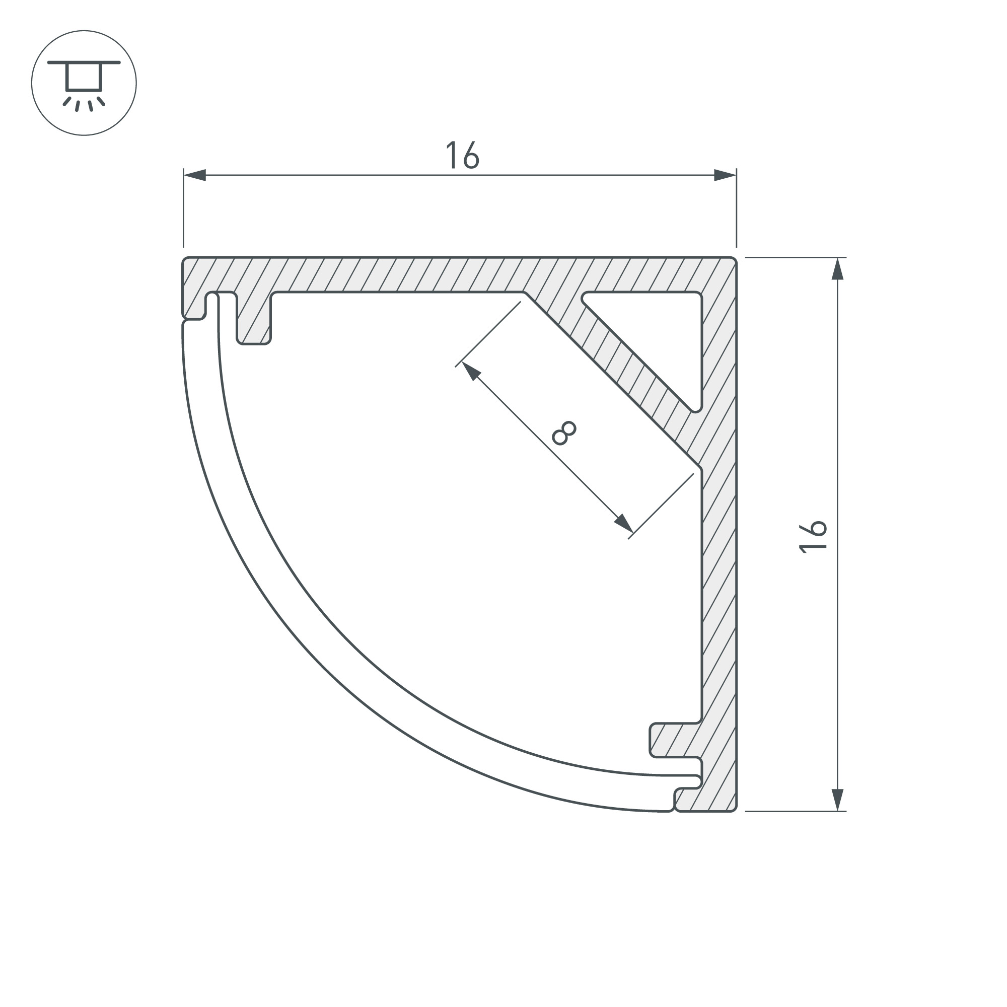 Накладной угловой профиль из анодированного алюминия для подсветки мебели, пазов, ниш и других элементов интерьера. Габаритные размеры профиля составляют 2000 мм в длину, 16 мм в ширину и 16 мм в высоту. Площадка для установки светодиодных лент позволяет использовать ленту шириной до 8 мм и мощностью до 14,5 Вт/м. Это обеспечивает гибкость в выборе светодиодных лент и создает потрясающие световые решения.