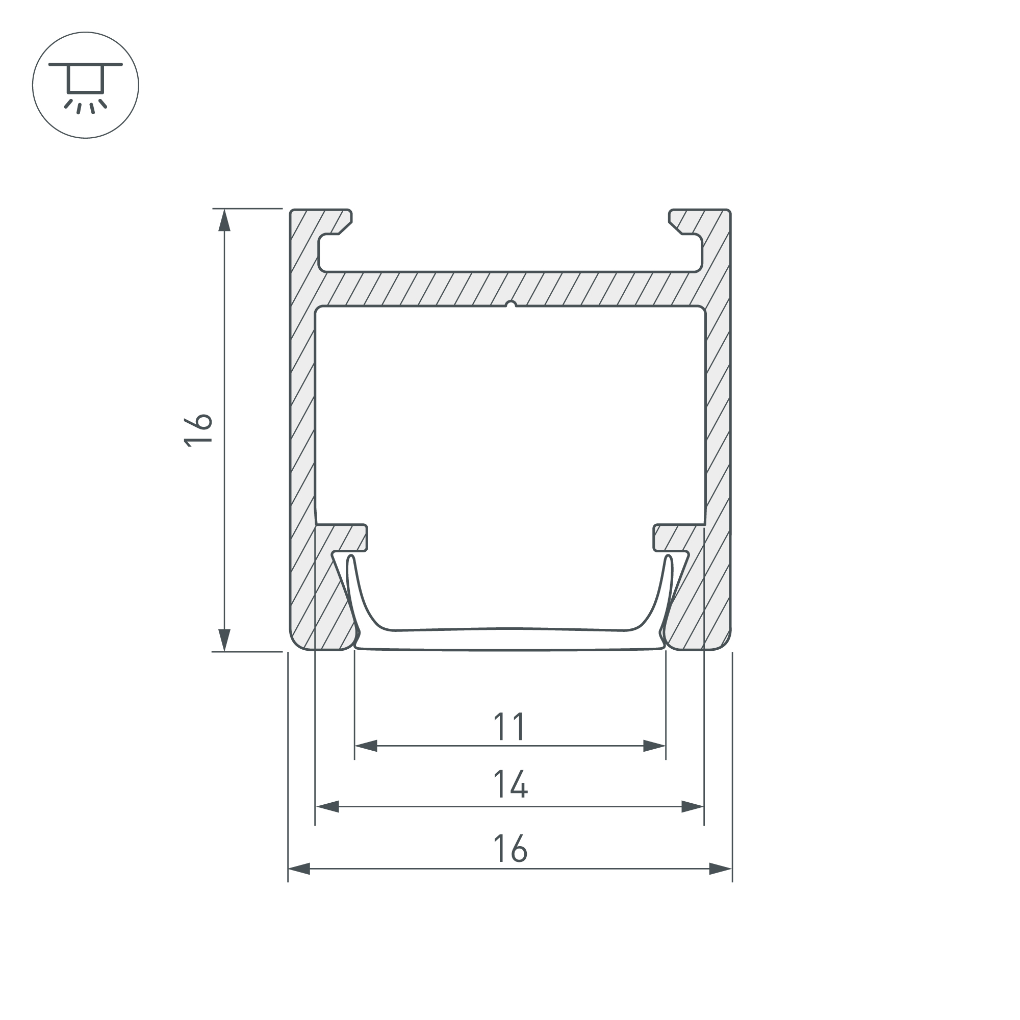 Накладной профиль из анодированного алюминия со скрытым монтажом на скобы для контурной подсветки. Габаритные размеры профиля составляют 2000 мм в длину, 16 мм в ширину и 16 мм в высоту. Площадка для установки светодиодных лент позволяет использовать ленту шириной до 14 мм и мощностью до 17 Вт/м. Это обеспечивает гибкость в выборе светодиодных лент и создает потрясающие световые решения.