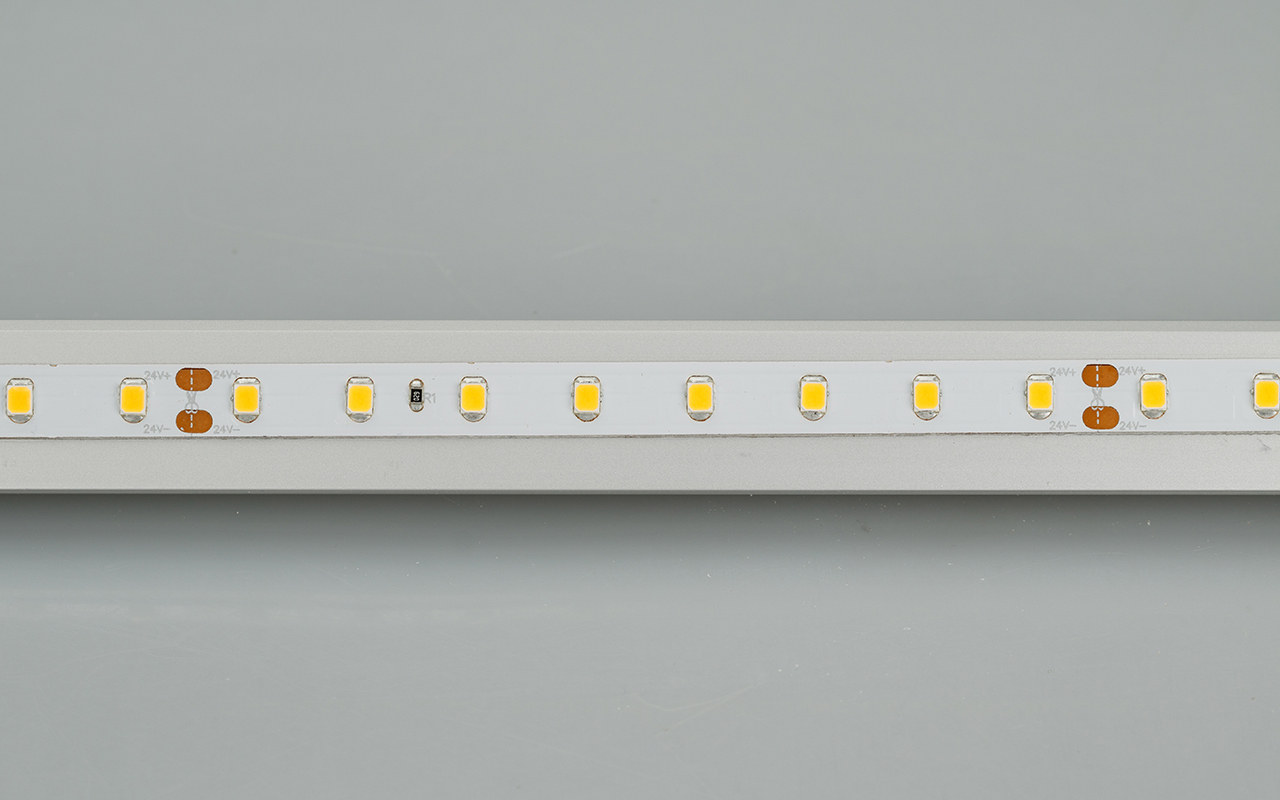 Открытая светодиодная лента шириной 8 мм и мощностью 6 Вт/м с индексом цветопередачи CRI>85. Светодиоды SMD 2835 (80 шт/м) теплого белого цвета свечения (2600–2800 К). Напряжение питания 24 В. Минимальный отрезок 100 мм (8 светодиодов). Высокая световая эффективность 150 лм/Вт позволяет создать качественное освещение в любых помещениях. Лента применяется для декоративной подсветки интерьеров, потолочных ниш, рабочих зон кухни, мебели, а также подходит для подсветки рекламных конструкций и витрин.