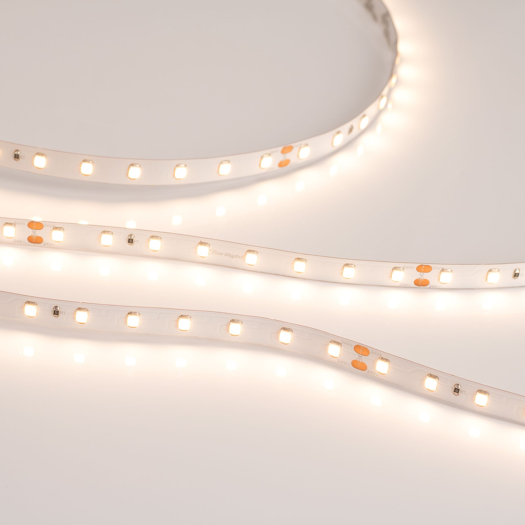 Светодиодная высокоэффективная лента RT серии A80 на монтажной бобине 50 м. Светодиоды SMD 2835, 80 шт/м, теплого цвета свечения (2700K). Напряжение питания 24 В, мощнсть 6 Вт/м. Минимальный отрезок 100 мм (8 светодиодов). Высокая световая эффективность (150 лм/Вт) позволяет создать качественное энергоэффективное освещение в любых помещениях. Лента применяется для декоративной подсветки интерьеров, потолочных ниш, рабочих зон кухни, мебели, а также подходит для подсветки рекламных конструкций и витрин. Разрезать перед подключением, максимальная длина подключения 5 м.