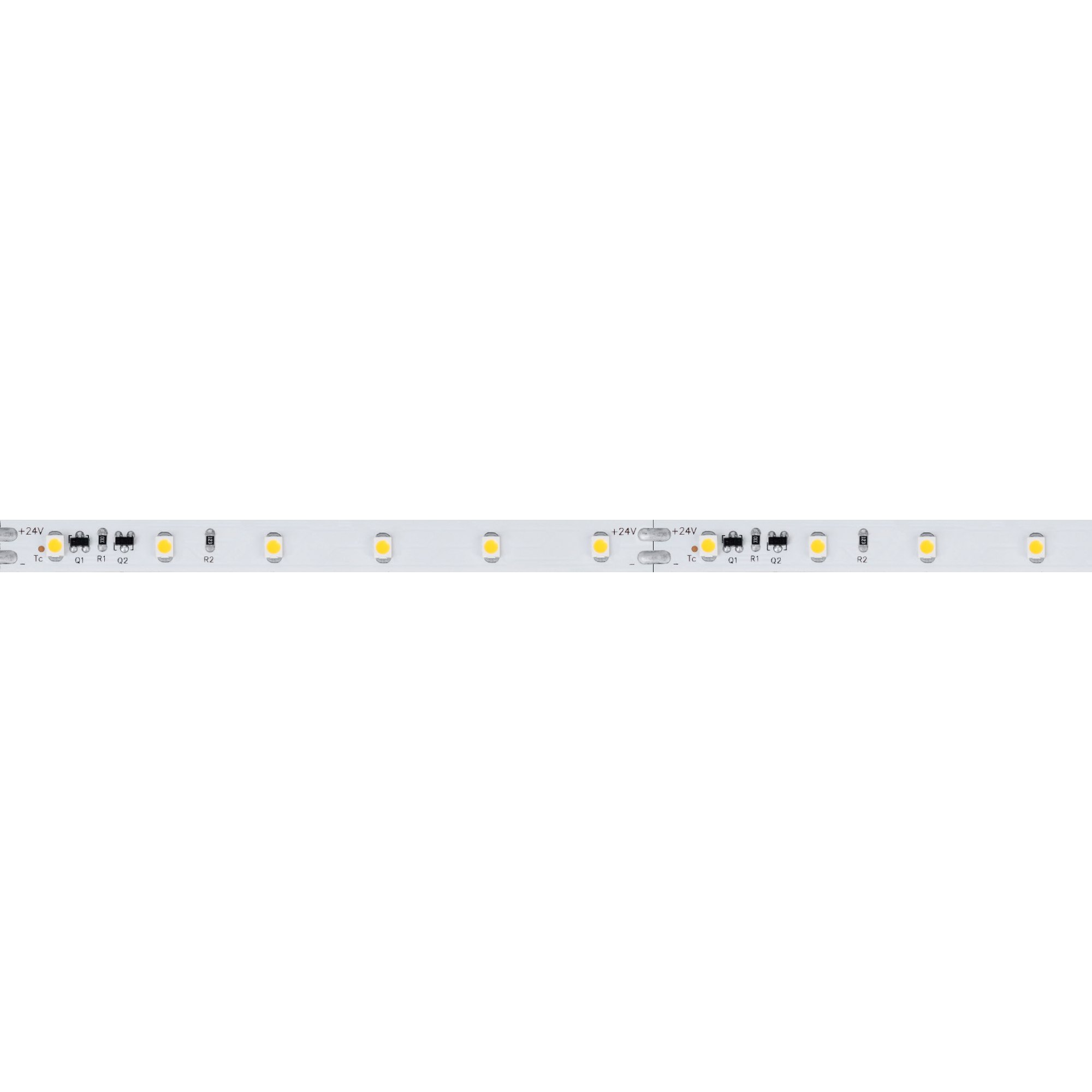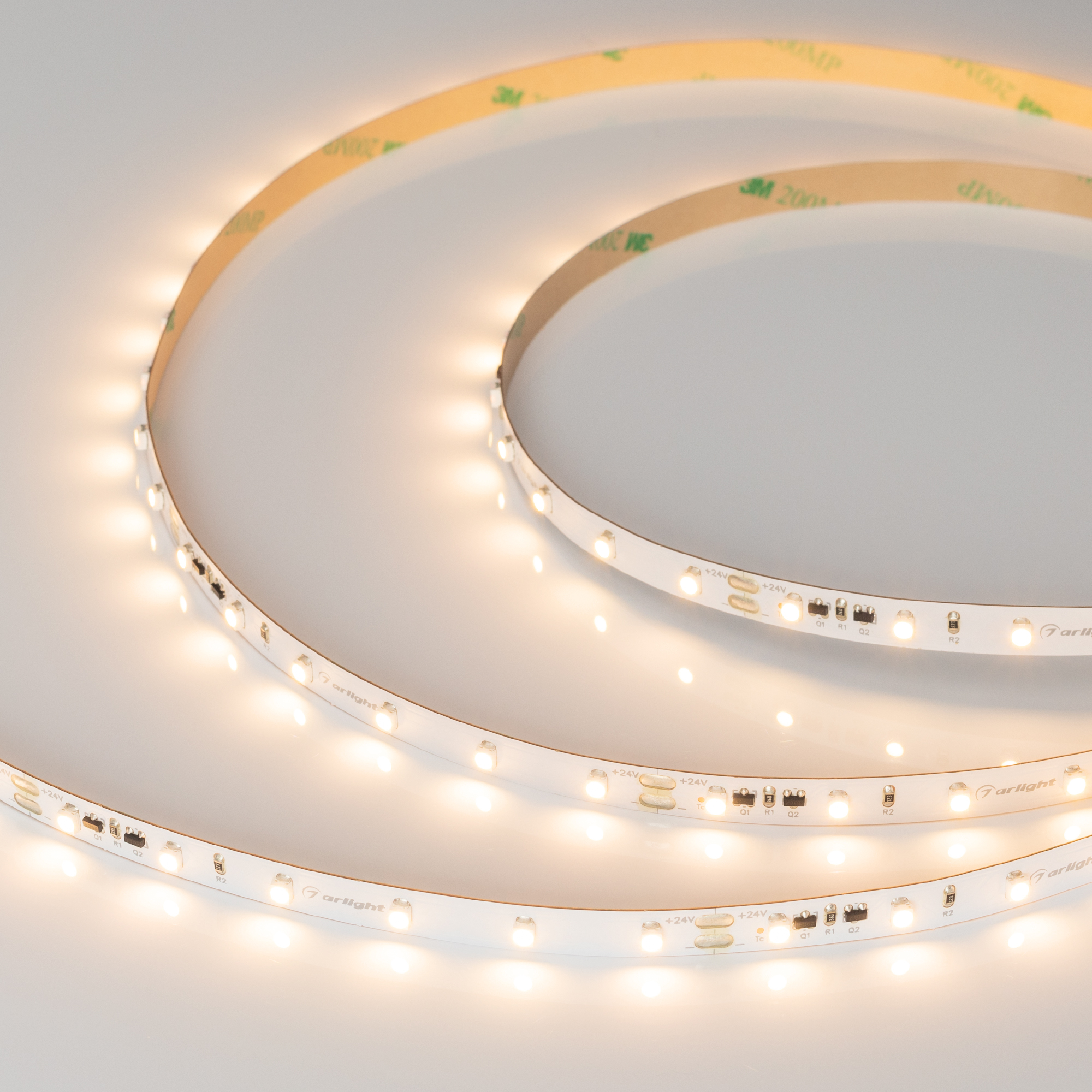 Стабилизированная лента длиной 10 метров и шириной 8 мм. Стабилизаторы тока обеспечивают равномерное свечение по всей длине ленты даже при подключении только с одной стороны. Светодиоды SMD 3528 (60 шт/м) теплого белого цвета свечения (2600–2800 K) с индексом цветопередачи CRI>80. Ширина платы 8 мм, мощность 4.8 Вт/м, напряжение питания 24 В. Подсветка потолочных ниш, декоративная подсветка, создание контуров рекламных объектов. Совместима с любыми диммерами (ШИМ). Минимальный отрезок 100 мм (6 светодиодов).