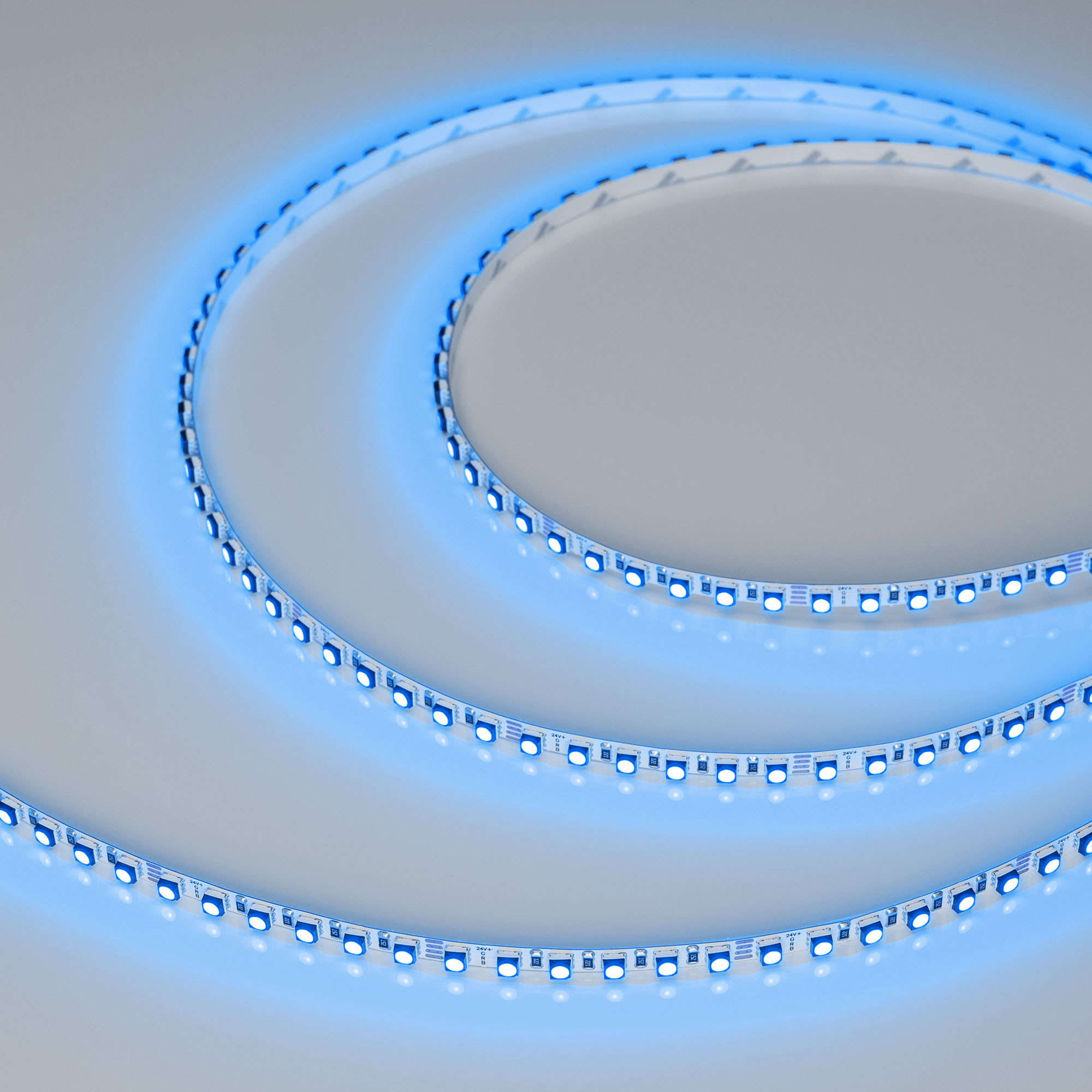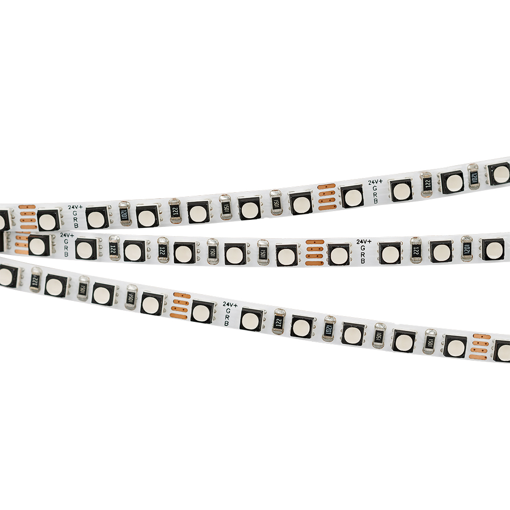 Мультицветная светодиодная лента MINI серии F120 шириной 5 мм, мощностью 8 Вт/м. цвет свечения RGB. Напряжение питания 24 В. Светодиоды SMD 3535 (60 шт/м). Минимальный отрезок 50 мм (6 светодиодов). Трехканальная лента с 4 проводами для подключения, управляется RGB-контроллером. Применяется для создания яркой цветной декоративной подсветки элементов интерьера, ниш, рекламных конструкций, витрин, зон отдыха.