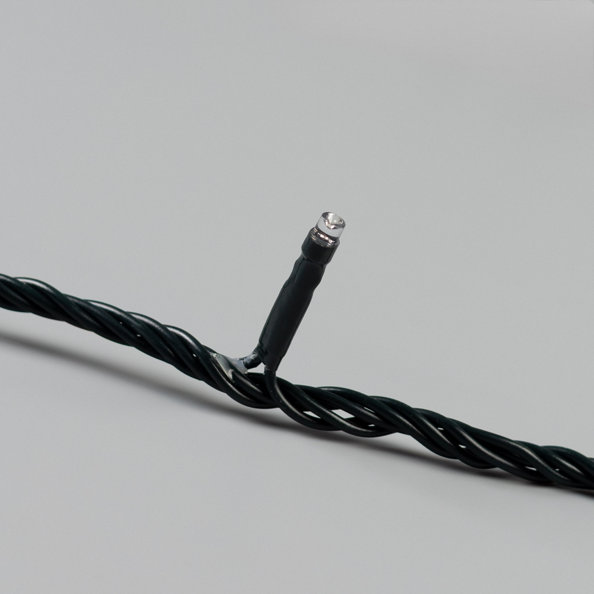 Светодиодная нить Home. Размер 5000 мм. Цвет свечения RGBY, 50 светодиодов размером 5 мм с динамическими и статическими эффектами свечения с резким световым рисунком (прозрачная вогнутая линза). Провод темно-зеленый, ПВХ. Питание 230 В, Мощность 3.5 Вт, защита IP20, применение в помещении. Аксессуары для подключения и управления идут в комплекте.