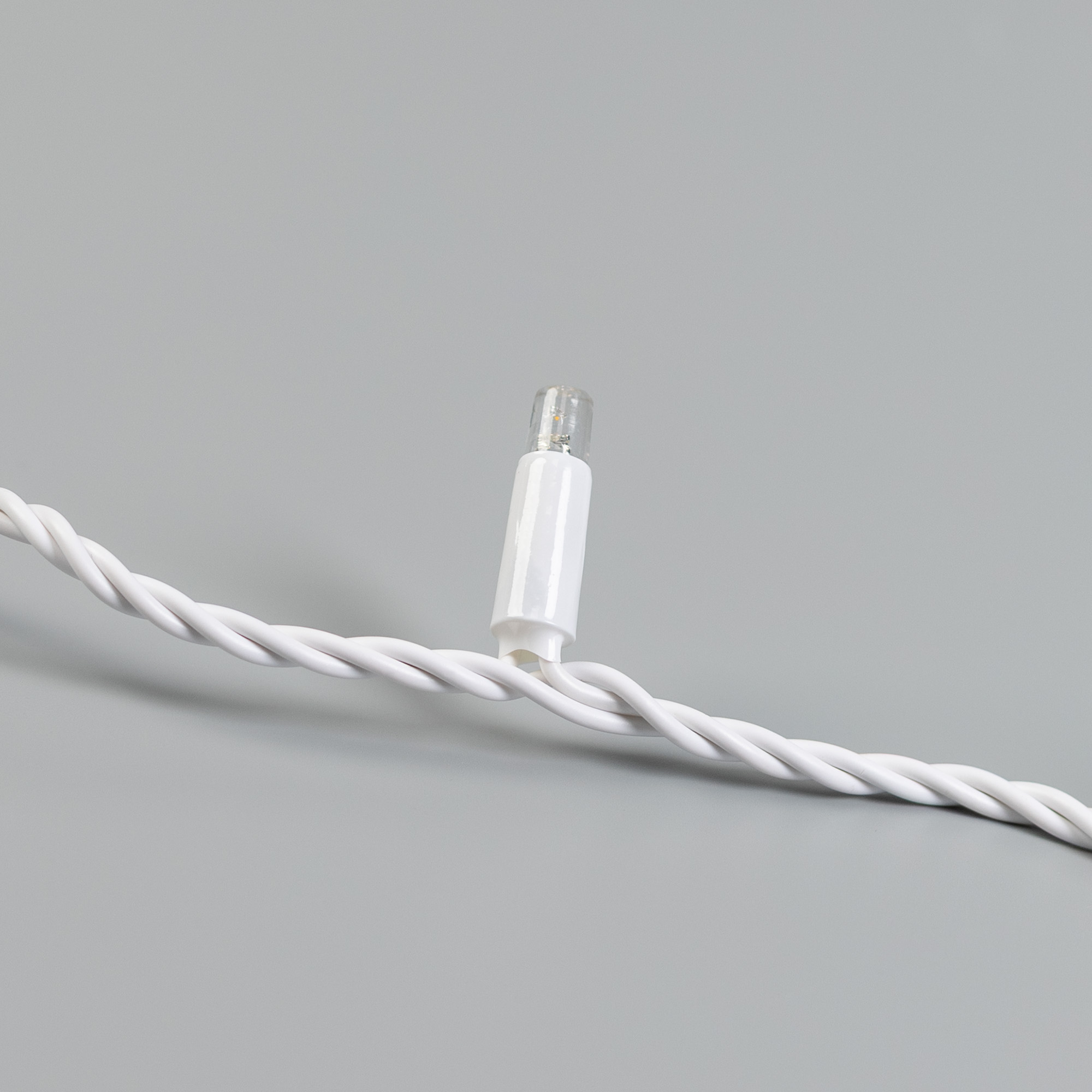 Универсальная светодиодная гирлянда "НИТЬ" серии Classic, предназначенная для декорирования и создания праздничного настроения как внутри помещений, так и снаружи (степень пылевлагозащиты IP65 позволяет размещать гирлянду на улице под навесом). Имея длину 10000 мм, она может использоваться для оформления средних и больших площадей. Универсальные соединительные разъемы позволяют наращивать длину до 50 м без использования дополнительных аксессуаров. Прозрачная вогнутая линза и эффект мерцания редких точек обеспечивают яркое и динамичное освещение, выделяя украшаемые объекты. Розовый свет, в сочетании с холодным белым, помогает создать необходимую атмосферу для декоративного объекта. Провод изготовлен из ПВХ и окрашен в белый цвет. Аксессуар для подключения гирлянды к сети приобретается отдельно.