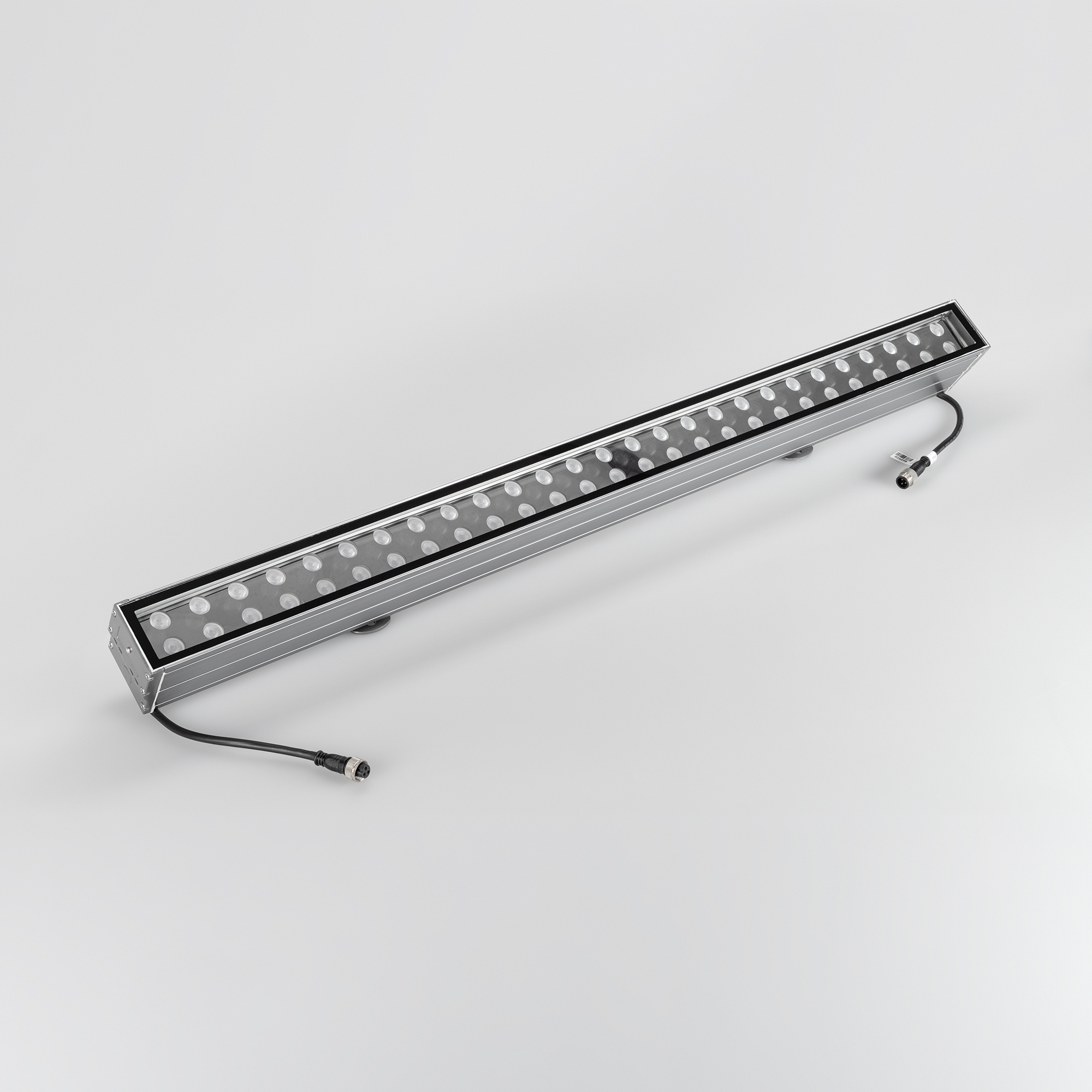 Линейный светодиодный прожектор AR-LINE-1000XL-54W-230V Day (Grey, 30 deg) мощностью 54 Вт с дневной температурой свечения 4000К и световым потоком 4300 лм широко используется для декоративной подсветки зданий, а также архитектурных и скульптурных объектов: памятников, мостов, арок и т. д. Специальная оптика, установленная в прожекторе, формирует распределение светового потока с узконаправленным углом излучения 30°, что позволяет создать яркую и красивую иллюминацию фасадов зданий, а также сделать акценты на архитектурных формах. Применение в прожекторе SMD-светодиодов с высокой световой эффективностью 80 лм/Вт экономит значительную долю электроэнергии. Алюминиевый корпус серого цвета, с размерами 1000х128х70 мм и степенью пылевлагозащиты на уровне IP65, дает возможность эксплуатировать прожектор как в помещениях, так и на открытом воздухе под навесом, избегая места с большим скоплением воды. Встроенный драйвер позволяет быстро и безопасно подключить прожектор напрямую к сети 230 В. Герметичные разъемы, входящие в комплект, упрощают подключение прожектора к кабелю питания и соединение прожекторов последовательно в группы, а два поворотных кронштейна обеспечивают надежный монтаж на поверхности.