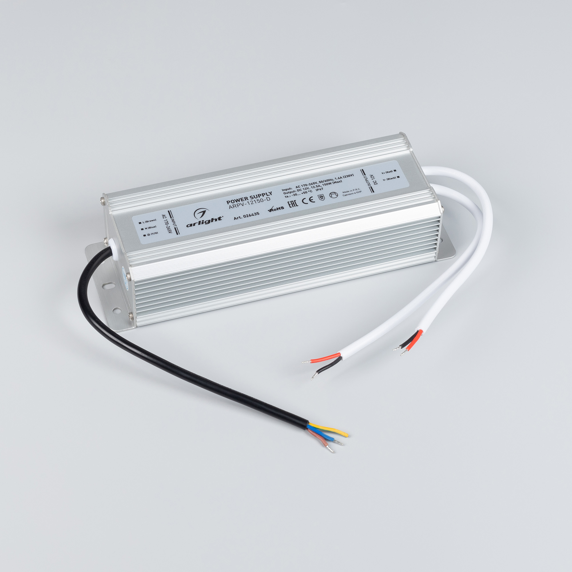Источник напряжения с гальванической развязкой для светодиодных изделий. Входное напряжение 170-265 VAC. Выходные параметры: 12 В, 12,5 А, 150 Вт. Герметичный алюминиевый корпус IP 67. Рабочая температура -30…+50C⁰. Габаритные размеры длина 210 мм, ширина 71 мм, высота 46 мм. Гарантийный срок 3 года.