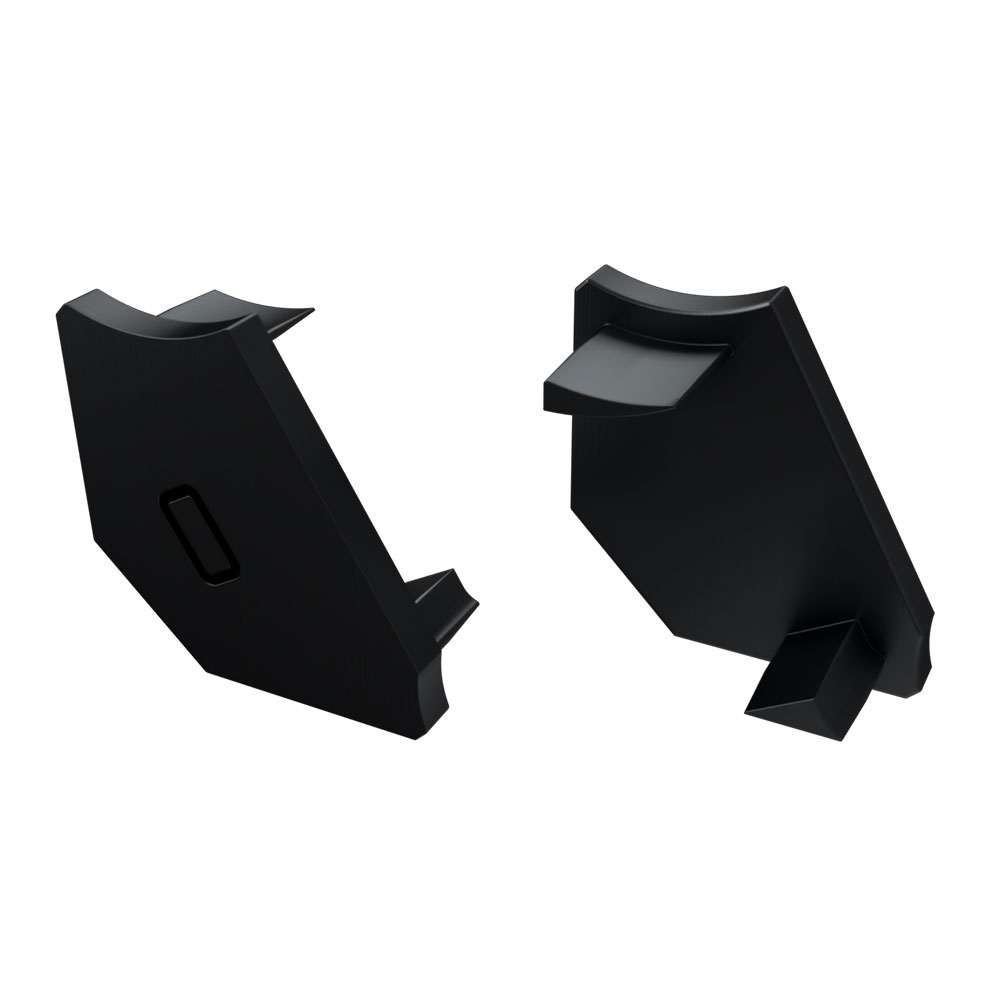 Черная левая глухая заглушка для профиля ALM-V60 придает законченный вид светильнику, а также защищает светодиодную ленту от внешних факторов (грязи, пыли и прочего). Имеется разметка под отверстие.