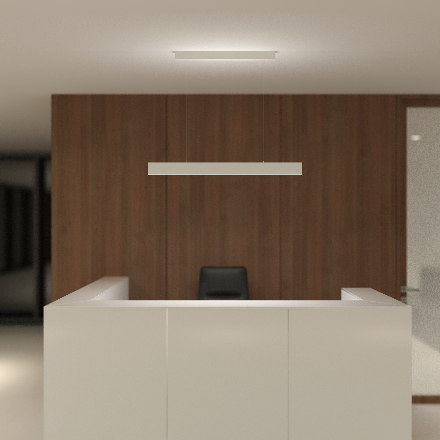 Подвесной линейный светильник SP-MARQUO-S770x70-20W Warm3000 (WH, 120 deg) мощностью 30 Вт с белым теплым цветом свечения 3000 K и широким углом излучения 120° для качественного декоративного освещения. Уровень цветопередачи CRI>80 и световой поток 1800 лм. Светильник с оригинальным дизайном подходит для декоративного освещения любых интерьеров.