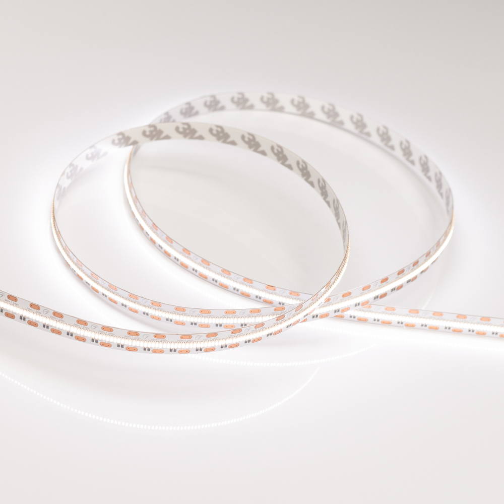 Лента MICROLED шириной 10 мм с очень высокой плотностью светодиодов (700 шт/м) и высоким индексом цветопередачи (CRI>90). Позволяет создать эффект сплошной линии света без применения рассеивающих экранов. Светодиоды SMD 2110 (700 шт/м) дневного белого цвета свечения (3900–4260 K). Мощность 20 Вт/м, напряжение питания 24 В. Для основного и декоративного освещения, создания ярких линий света. Минимальный отрезок 10 мм (7 светодиодов).