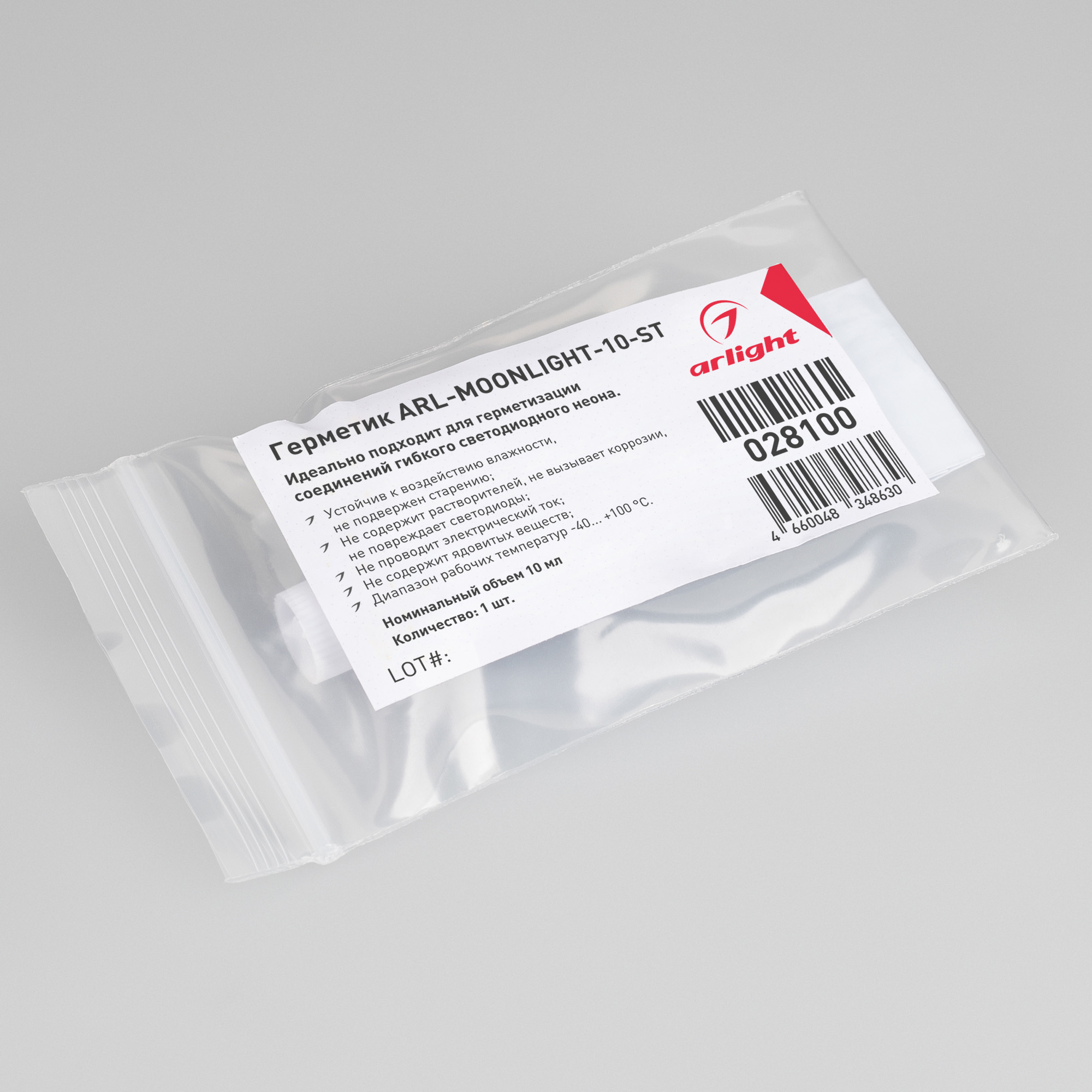 Герметик разработан специально для герметизации соединений гибкой герметичной ленты серии MOONLIGHT. Объем 10 мл обеспечивает достаточное количество герметика для герметизации нескольких лент. Не проводит электрический ток. Не содержит растворителей, не вызывает коррозии, не повреждает светодиоды. Устойчив к воздействию влажности, не подвержен старению. Не содержит ядовитых веществ.