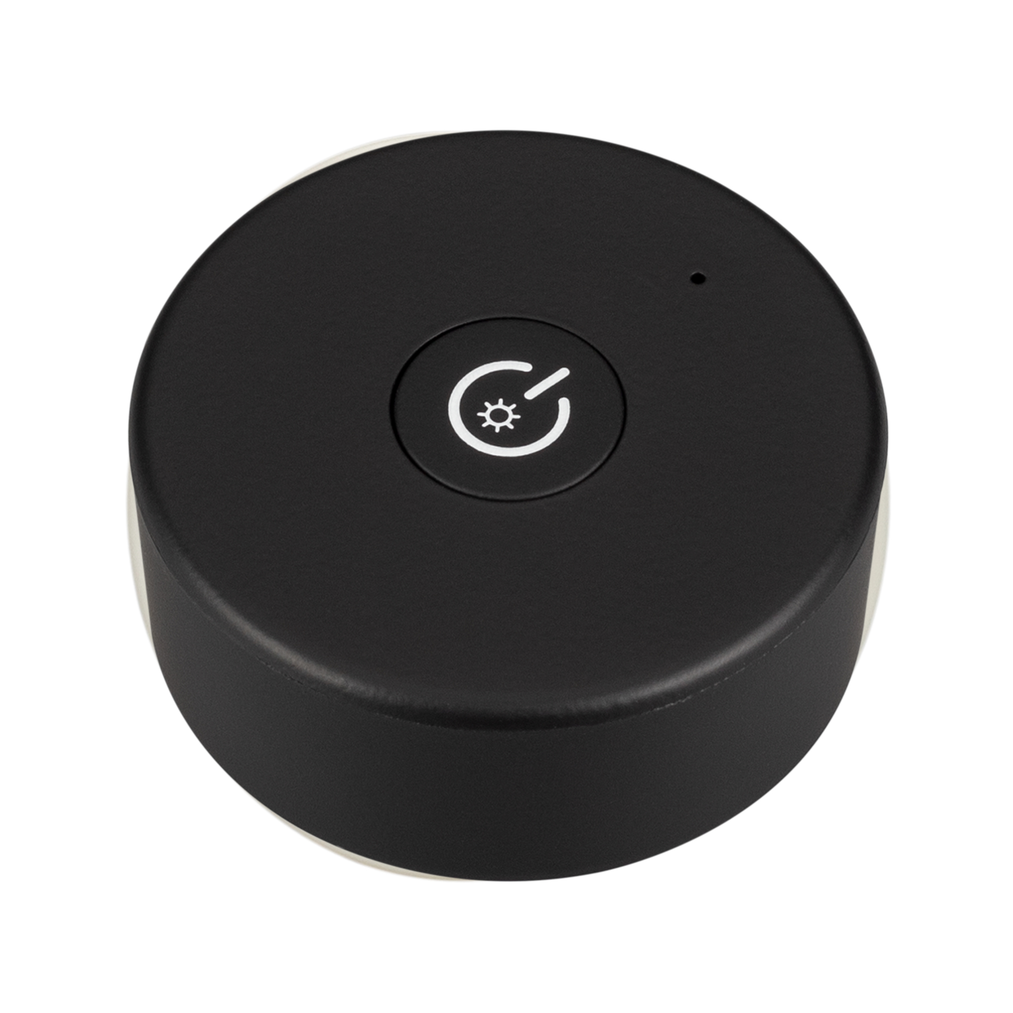 Накладная миниатюрная кнопочная панель чёрного цвета. Предназначена для управления одноцветными источниками света (ШИМ) с помощью кнопки. Основные выполняемые функции: включение и выключение света, регулировка яркости. Изделие применяется в качестве однозонного пульта дистанционного управления диммерами и контроллерами серии SMART. К одной панели возможно привязать неограниченное количество диммеров и контроллеров. Устройство совместимо с диммерами и контроллерами серии SMART, поддерживающими управление по радиоканалу 2.4G. Питание 3В осуществляется от батарейки CR2032. Габариты панели 43х43х17 мм, корпус выполнен из пластика. Устройство устанавливается на любую поверхность, к которой возможно прикрутить магнитный держатель панели.