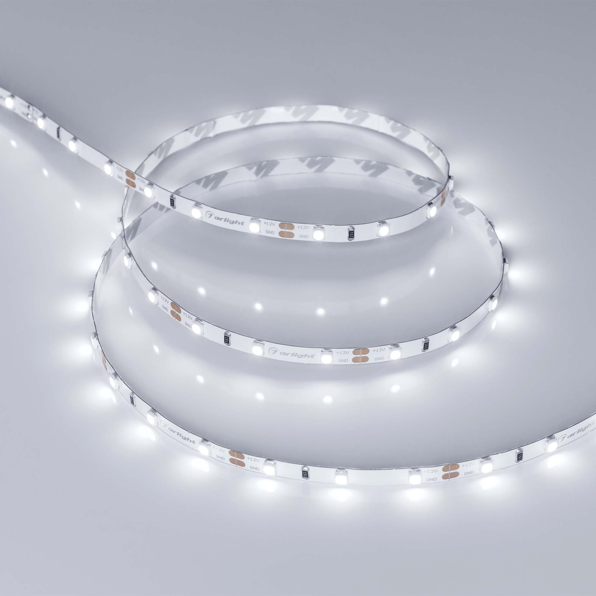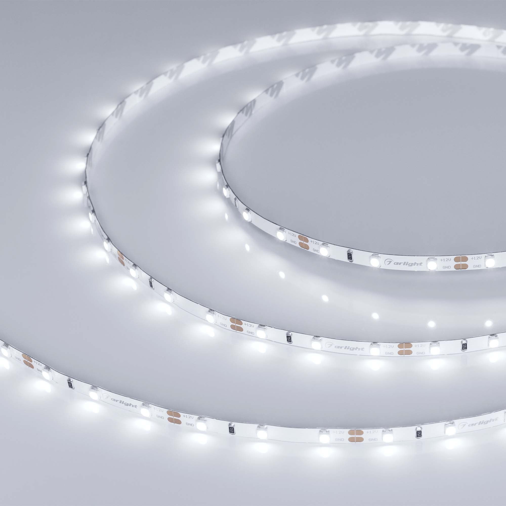 Узкая светодиодная лента RT серии A60 шириной 5 мм, мощностью 4.8 Вт/м. Цвет свечения белый (6000K). Напряжение питания 12 В. Светодиоды 2835, 60 шт/м. Минимальный отрезок 50 мм (3 светодиода). Индекс цветопередачи CRI>85. Универсальная лента для организации декоративной подсветки в помещениях: подсветка лестниц, ступеней, плинтусов, ниш, мебельных полок, натяжных потолков и витражей. Узкая плата позволяет установить ленту в тонкий паз. Управление с помощью диммера для одноцветных лент.